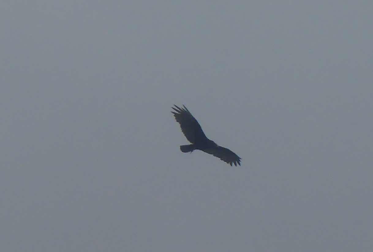 Nach wenigen Flügelschlägen stand er im Wind und schwebte bewegungslos in der Luft im Luftstrom hin und her. Die Spannweite mag mehr als 1 m gewesen sein, die Silhouette war typisch für einen Raubvogel. Ich habe versucht ihn zu fotografieren aber nicht erfolgreich. Schade!