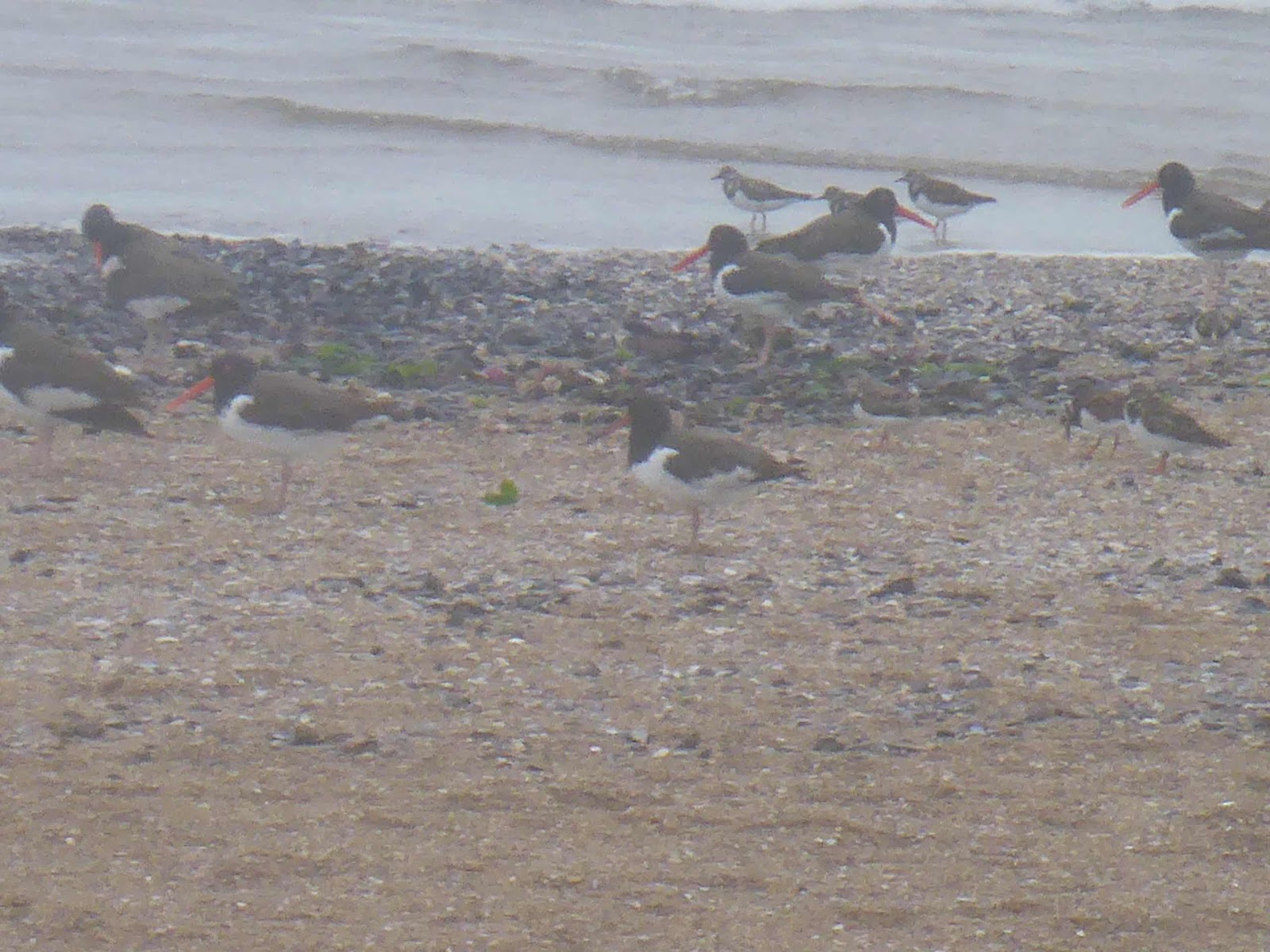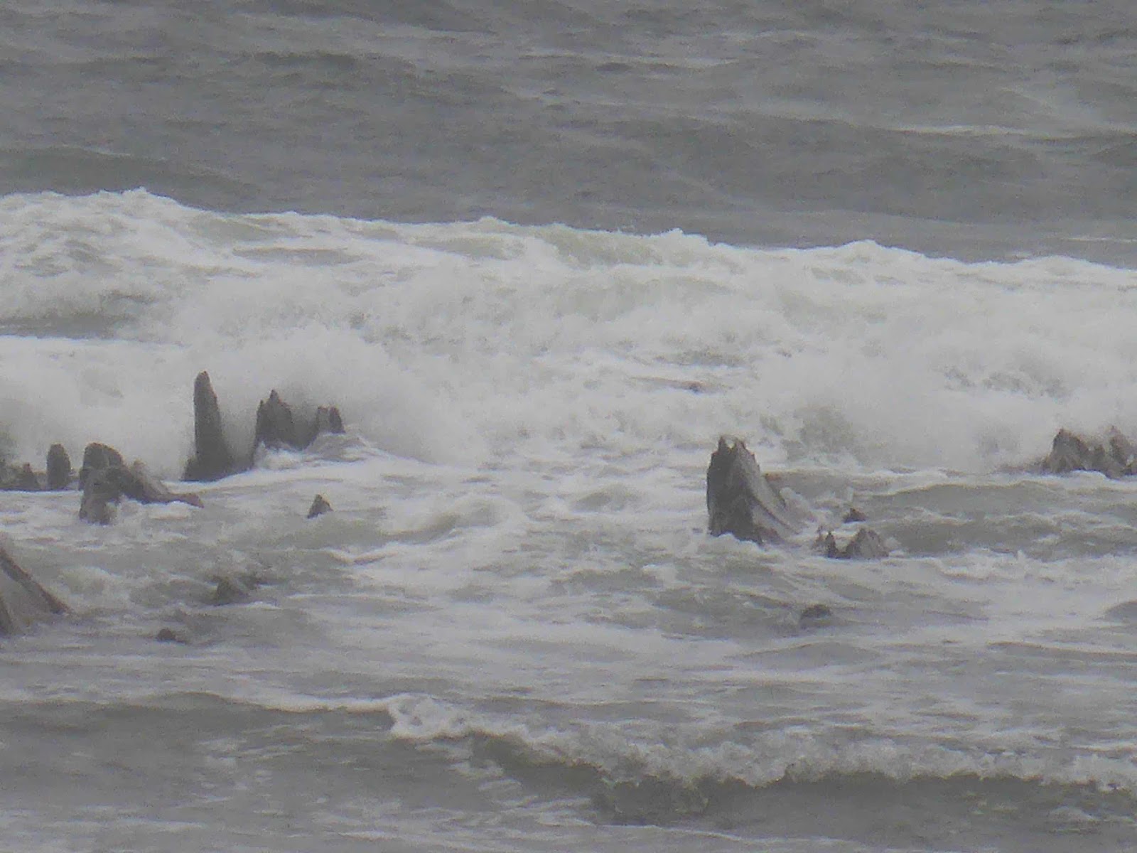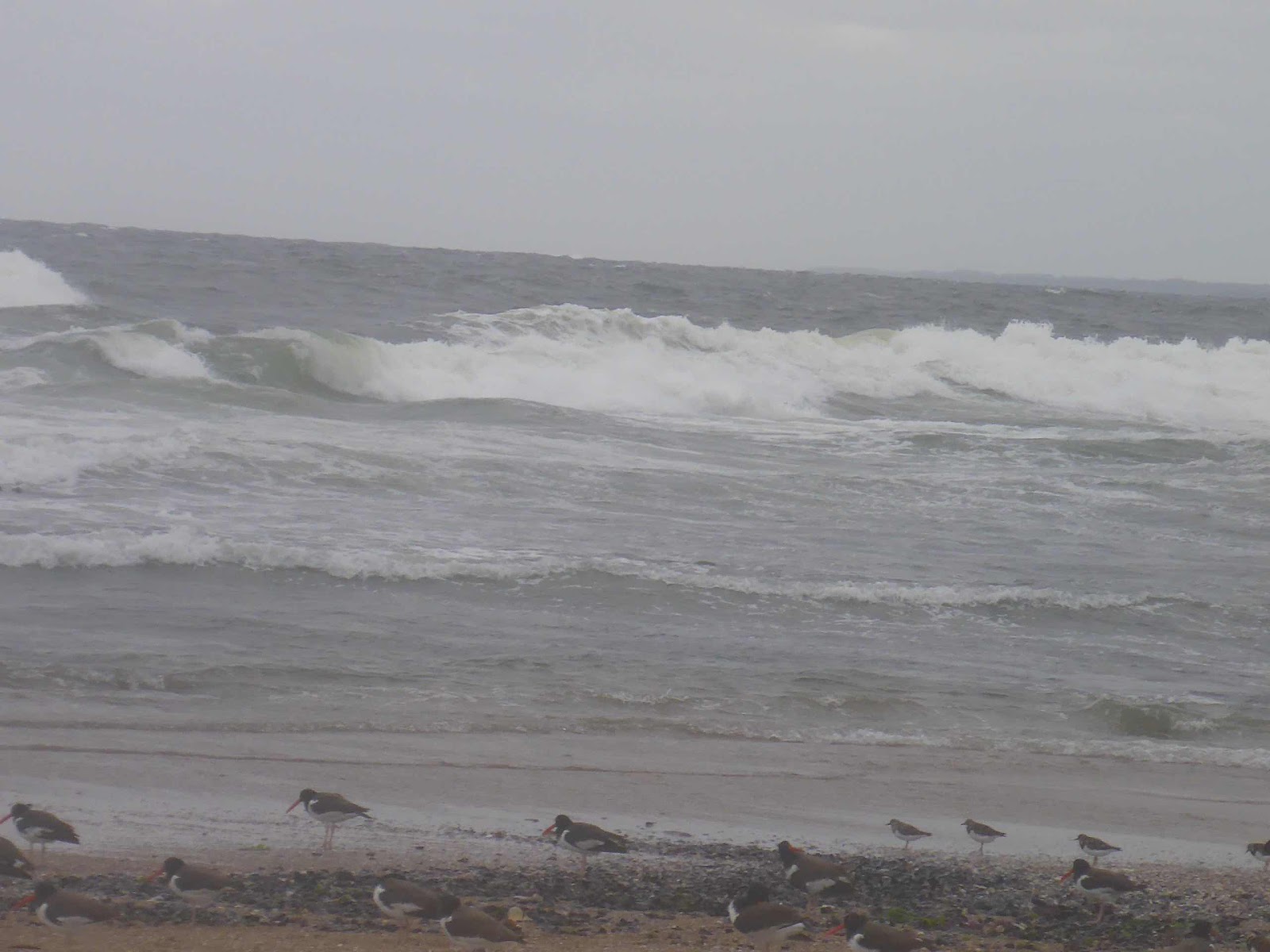 Hier am Meer hat der Wind wieder etwas aufgefrischt und die ursprüngliche Aussage bleibt bestehen: kein Wetter für Sonnenbrand. Trotzdem ist ein kleiner Spaziergang hier am Wasser sehr schön. 20 m vor mir ist ein Vogel, den ich zuerst für ein dunkles Huhn gehalten habe aber dann, als ich näher kam, flog er auf und breitete seine Schwingen aus.