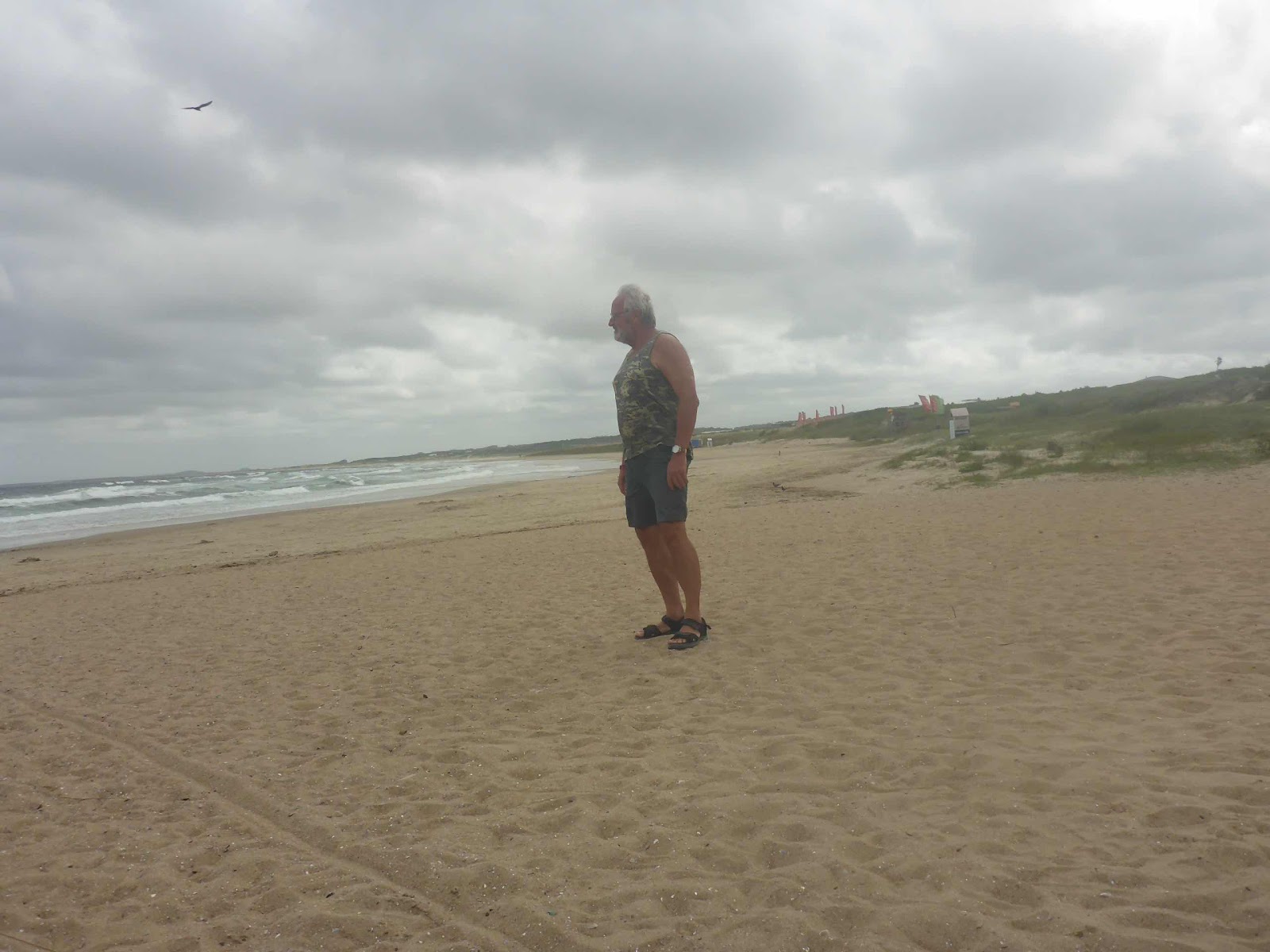 Dieser Strand hier ist tatsächlich bewacht, auf kurzer Strecke sehe ich drei kleine Wachhäuschen mit den jeweiligen Rettern darin. Allerdings hängen auf rote Flaggen aus, wahrscheinlich wird schwimmen heute nicht so gerne gesehen.