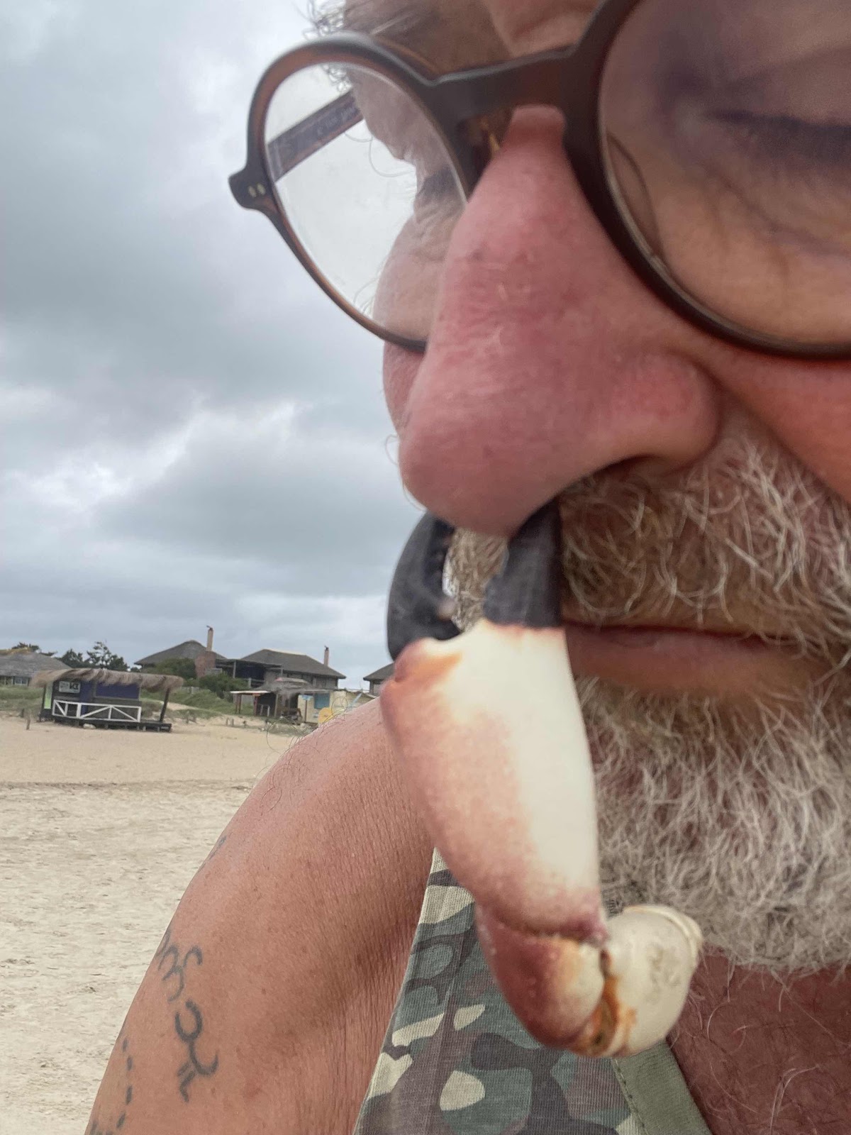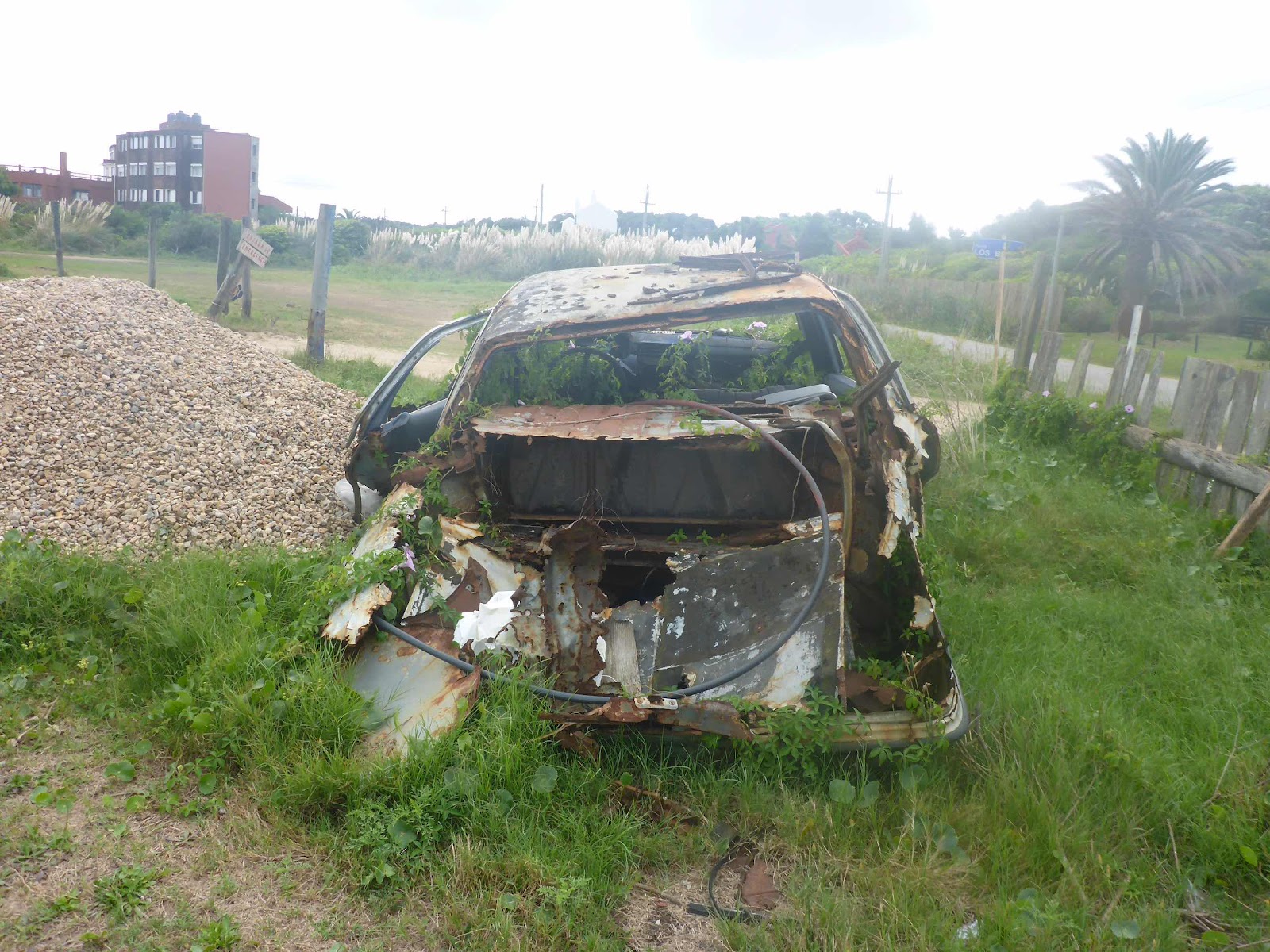 Mein Eindruck war richtig: kein Touristendorf wie Punta del Diabolo, sondern eine kleine Stadt. In diesem Zentrum war dann auch eine große Wiese, wo das Gerippe eines Wals ausgestellt war. Ich ging auf die Wiese, um mal zu checken, ob das echte Knochen waren, die da in der Sonne verbleichen oder irgendwas Künstliches. Es war tatsächlich echt. Aber dann entdeckte ich noch etwas: an meinen Beinen und an meinen Armen saßen nahezu unzählige kleine Insekten.