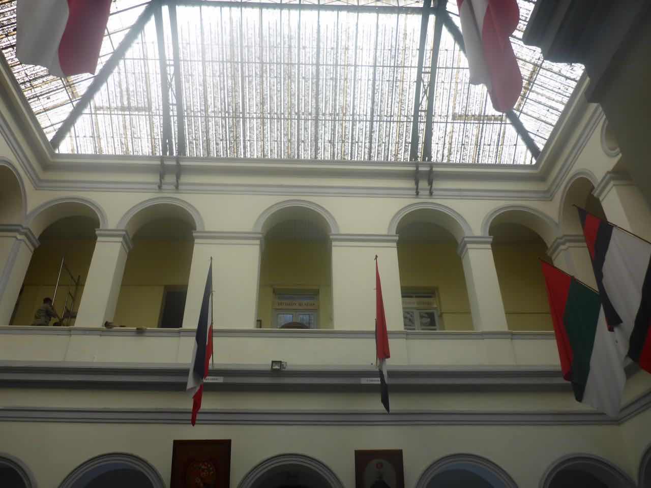 Es ist ein wundervolles Gebäude, im Zentrum gibt es eine große Halle, die sich über beide Etagen erstreckt und die ein sehr schönes, wenn auch schmutziges Glasdach trägt.