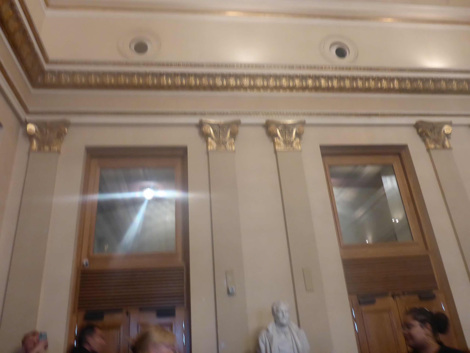 Wir standen so mit 60 - 70 Leuten im Eingangsbereich und warteten auf den Beginn der Führung. Der Lärm war unbeschreiblich. Allerdings waren kaum Männerstimmen zu hören, sondern eher viele aufgeregt durcheinanderreden Frauenstimmen. Zur Ehrenrettung muss man aber sagen, dass der Raum ziemlich komplett mit Marmor ausgeschlagen war, was der Akustik natürlich nicht zuträglich ist.