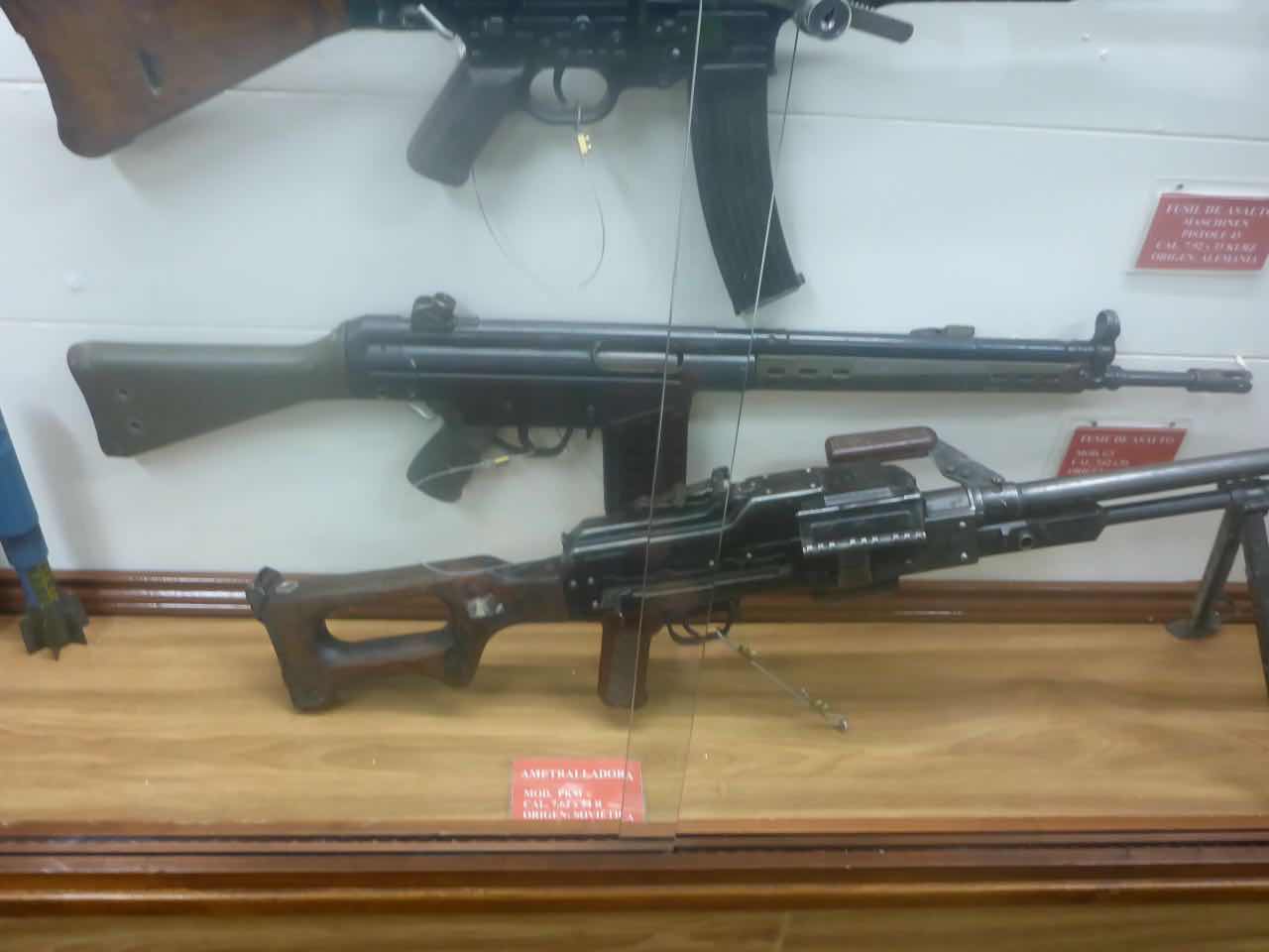 Die Waffen, die hier ausgestellt werden, kommen bis auf das deutsche G3 dieses Mal glücklicherweise aus anderen Ländern, wie den USA, England, Belgien und Frankreich. Endlich mal nicht Deutschland first. (Später habe ich aber auch noch andere deutsche Waffen gefunden). In dem hier ausgestellten G3 habe ich tatsächlich die Waffe wiedererkannt, an der ich Anfang der 70iger beim Bund ausgebildet wurde. Ich habe beim Anblick echt überlegt, ob ich sie noch auseinandernehmen könnte…..