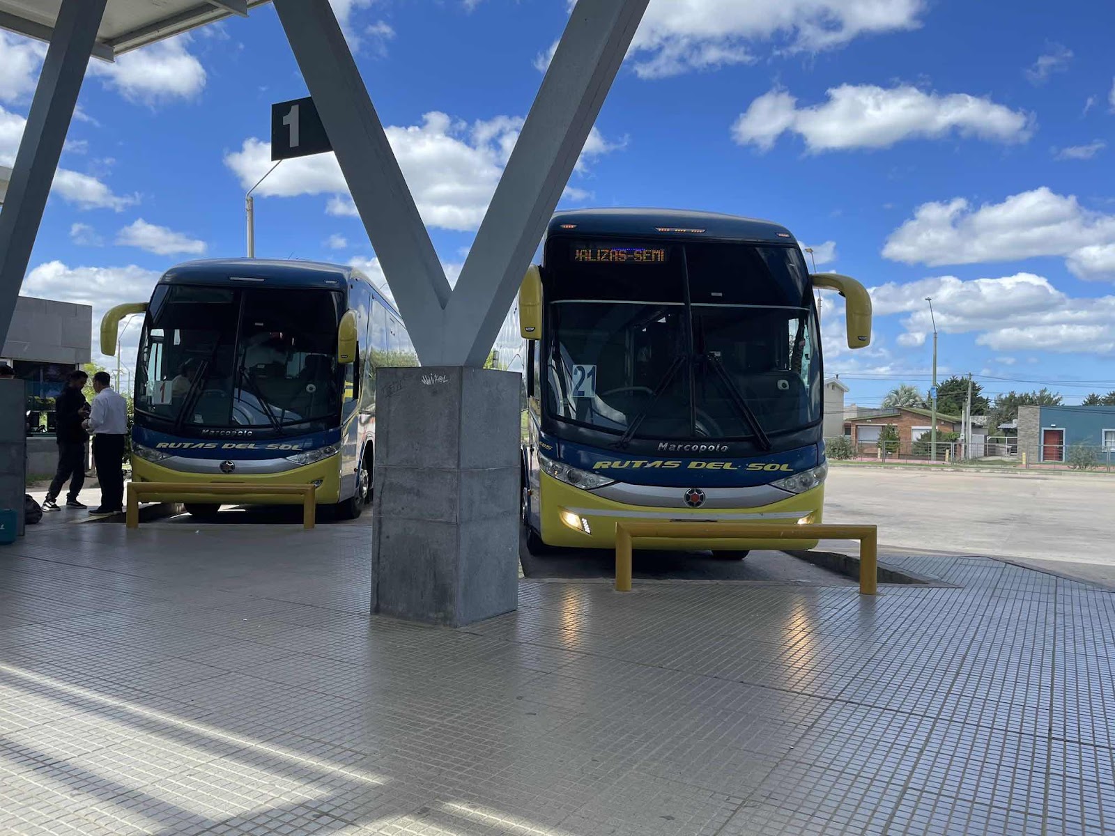 In Rocha war meine Wartezeit dann doch länger als vermutet, weil der Bus nicht kam. Es gibt hier nur sechs Bahnsteige, aber hier fahren viele Busse rein und raus und ich warte immer auf die Nummer 22. Das sind so Pappschilder, die die Busfahrer vorne ins Fenster rein hängen oder auch nicht. Man rennt also immerhin und fragt ob er nach la Paloma fährt.