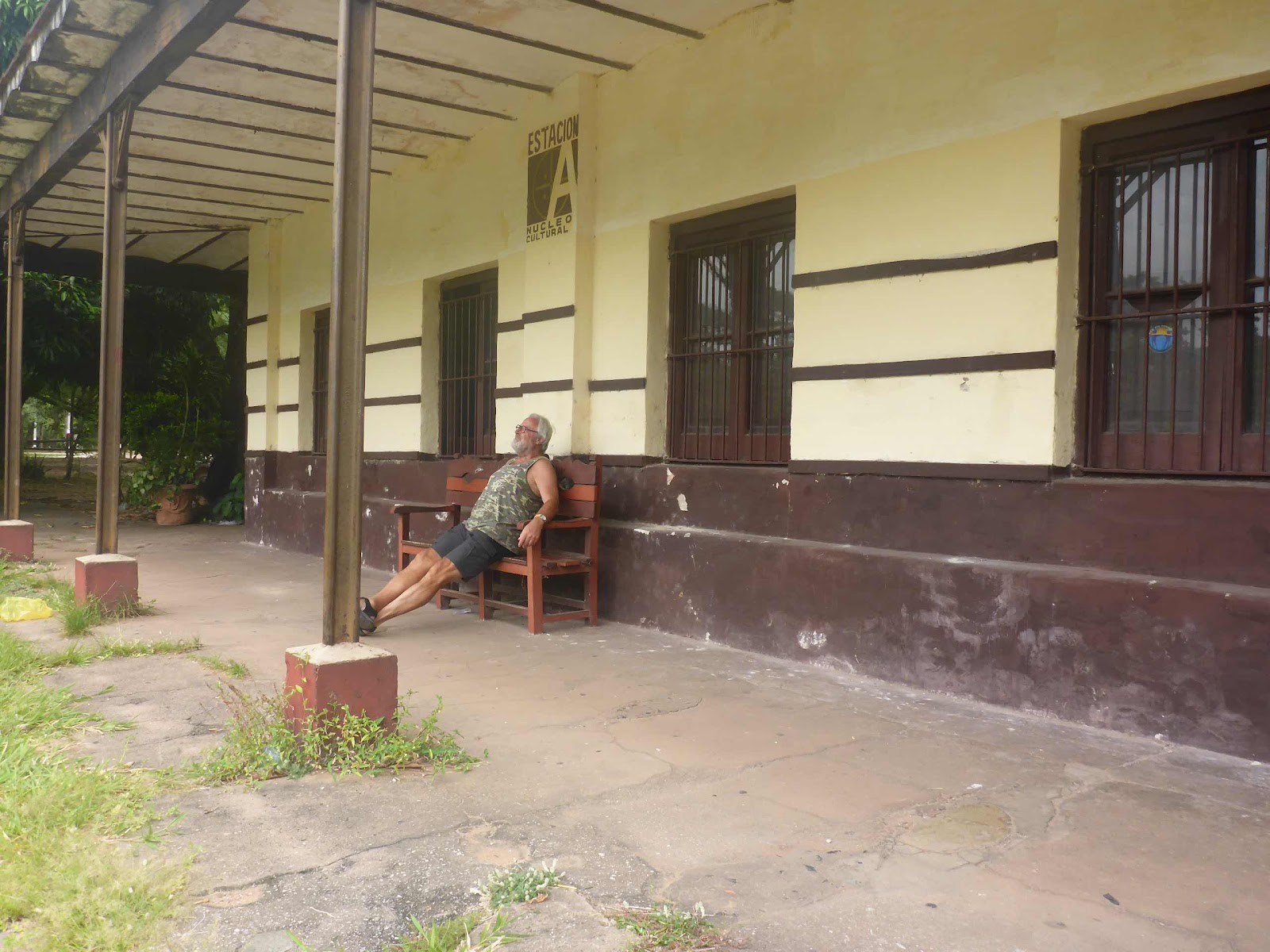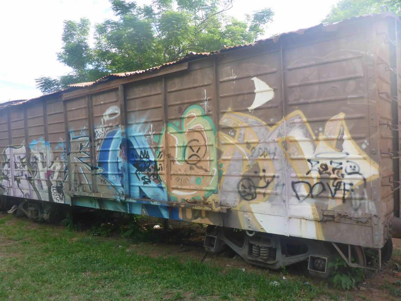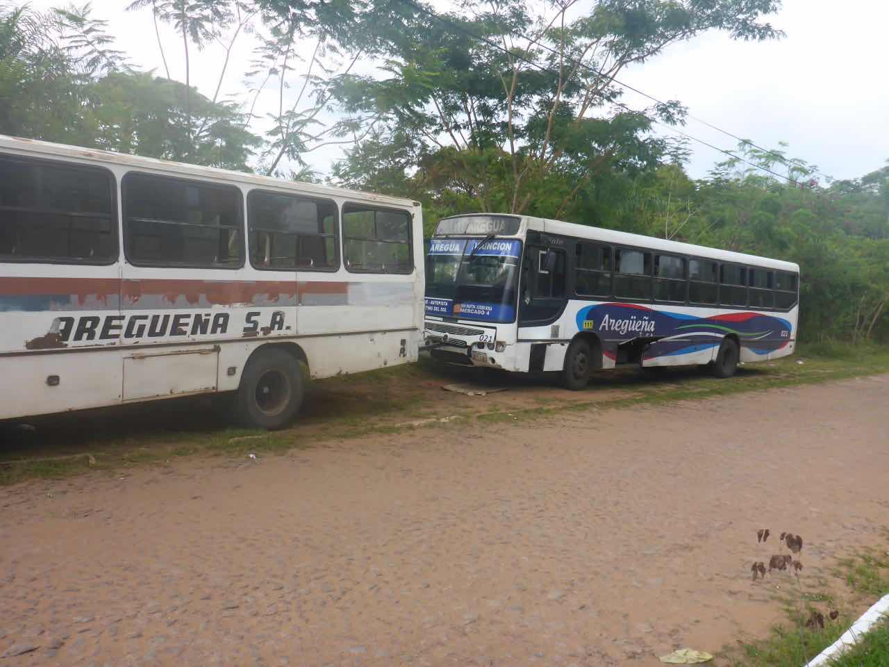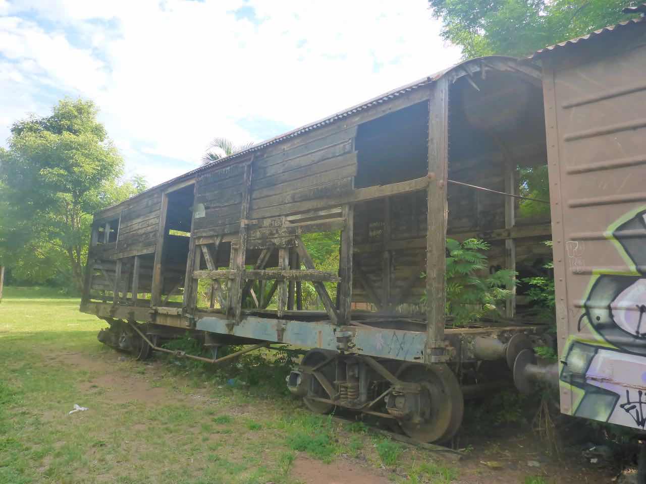 Hier verkehrt der Tren de Lago, eine alte Dampfeisbahn, die von Asuncion aus hierher führt. Ich hatte im Internet gelesen, dass dieser Zug angeblich noch fährt, fand aber keine Orte, wo man sowas buchen konnte oder wo man Abfahrtszeiten sehen konnte. Schade. Als ich dann hier war, sah ich auch, warum man keine näheren Angaben fand: der Zug verkehrt wohl schon seit zig Jahren nicht mehr. Dafür stehen hier noch ein paar verrottete Waggons herum und dann habe ich auch den Bahnhof sehen können. Er scheint mittlerweile ein Wohnhaus zu sein.