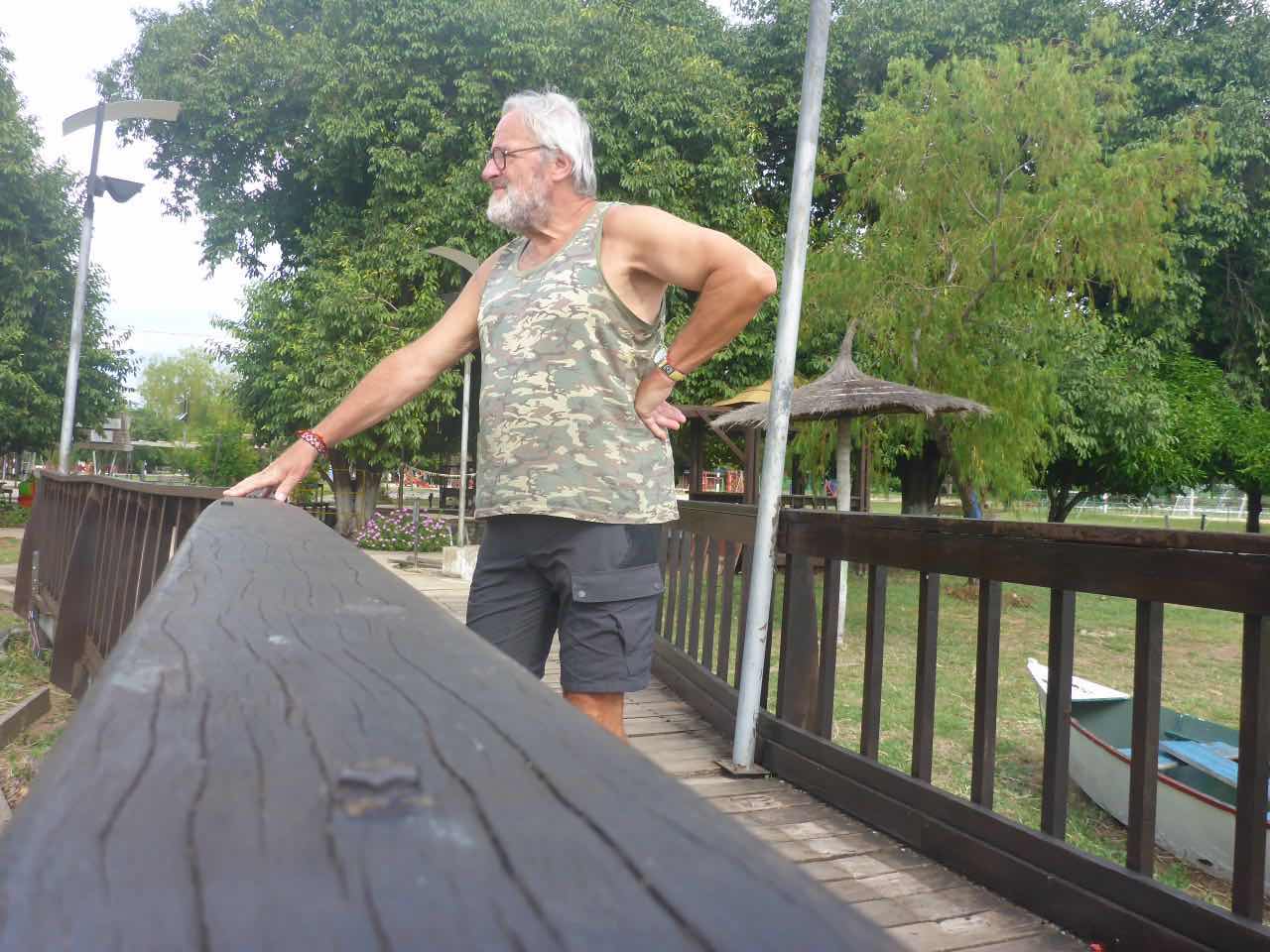 Ich fürchte, der See ist eine große Umweltsünde. Hier am Ufer ist schmutziger Schlamm und im Nahbereich ist das Wasser völlig undurchsichtig, obwohl kein Wind ist und auch keine Welle. Das Schild „schwimmen verboten“hätte man sich schenken können, kein normaler Mensch geht hier rein. Am Anfang der ganzen Anlage, die auf Familienfreizeit getrimmt ist mit Spielgeräten und alle möglichen, ist auch ein Schild mit Eintrittspreisen, aber der noch vorhandene Wärter hat mich einfach durchgewunken mit Adelante, Adelante, Adelante!