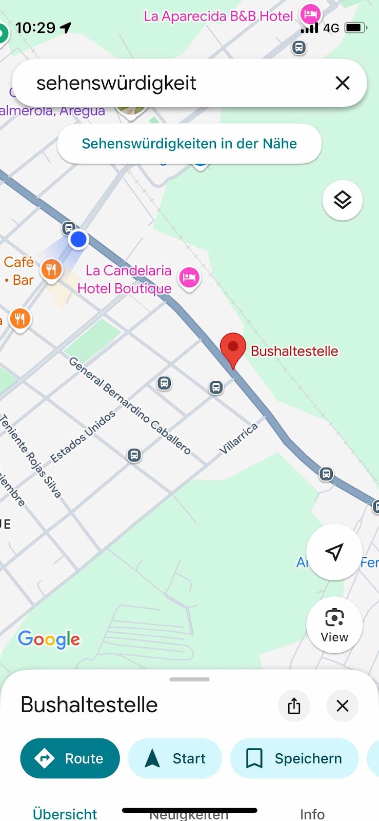 Ich habe dann mal die Google Maps - Suche das Wort „Sehenswürdigkeiten“ eingegeben. Das erste Ergebnis war ernüchternd, weil da nur eine Bushaltestelle angezeigt wurde, aber als ich dann die Suche etwas erweiterte, kamen ein paar Treffer heraus.