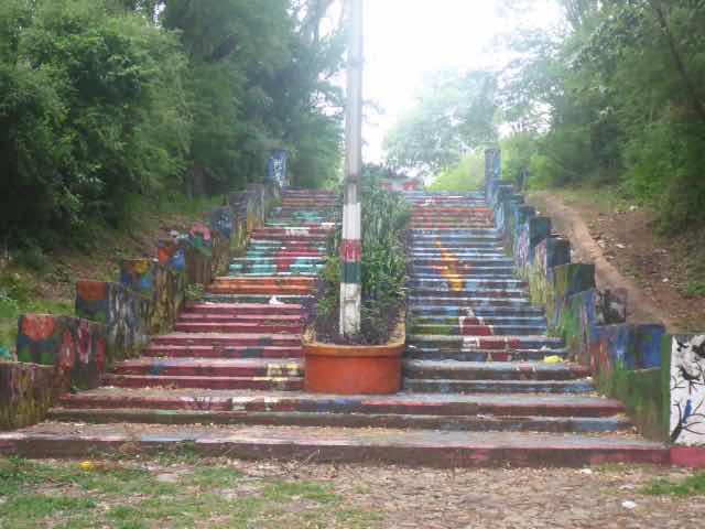 Ich verstehe ja, dass man in so einem an Sehenswürdigkeiten recht armen Ort nach jedem Strohhalm greift, vor allem, wenn die Hauptsehenswürdigkeit, der See, nicht mehr so toll ist. Jetzt muss ich aber auch mal eine Lanze für die Stadt brechen, in der ich studiert habe: Treppen können die in Wuppertal echt besser!