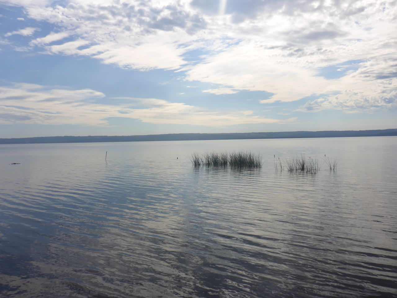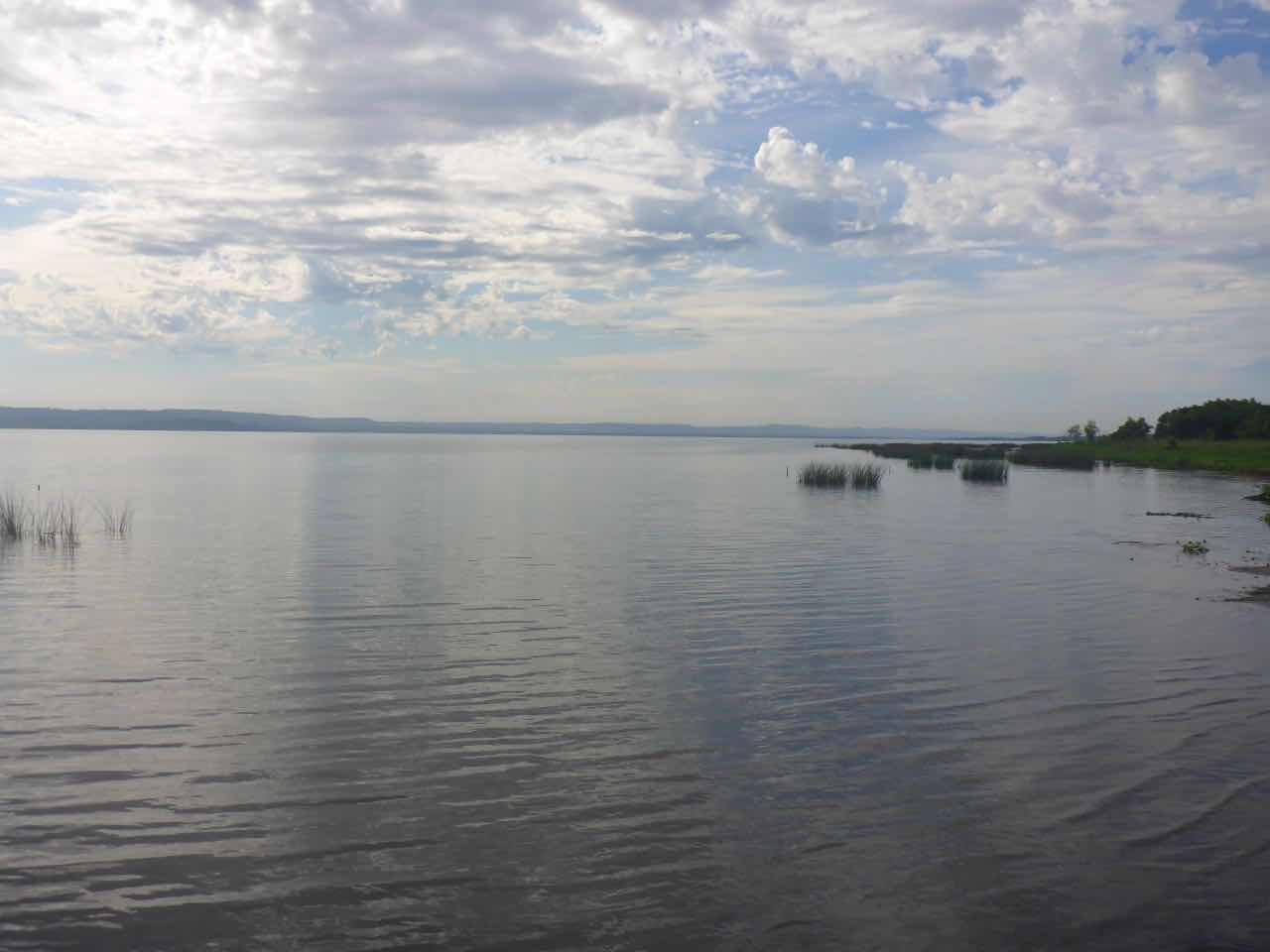 Der See ist wirklich riesig groß, aber er wirkt nicht wirklich benutzt. Man sieht keine Schiffe drauf weder Fischer noch irgendwelche Segler, obwohl gegenüber ein Yachthafen ist. Es gibt auch ein Schild, das das Schwimmen hier verboten ist und wenn ich so von dem Steg aus ins Wasser reingucke, ahne ich, warum das so ist.