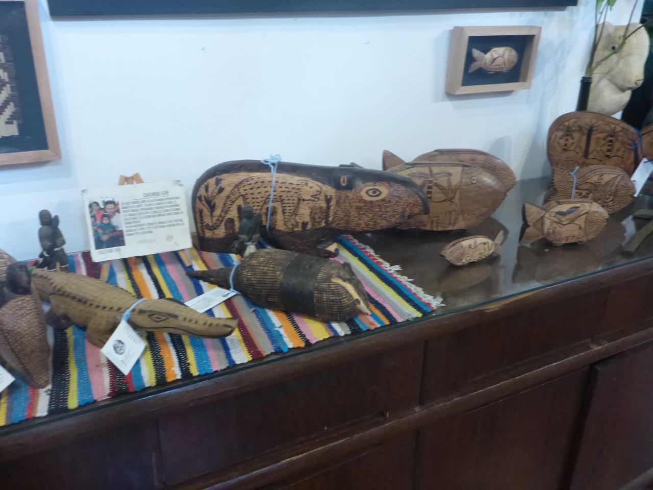 Auf dem Weg kam ich noch an einem kleinen nennen wir es mal Kunstshop vorbei. Anders als sonst im Dorf gab es hier keine Gartenzwerge mit großen Geschlechtsteilen, sondern etwas, was ich vielleicht als naive Kunst bezeichnen würde. Tiere aus Holz oder auch Figuren und einige Bilder waren zu sehen. Mit Sicherheit nicht mein Geschmack, aber deutlich besser als die anderen Dinge im Dorf.