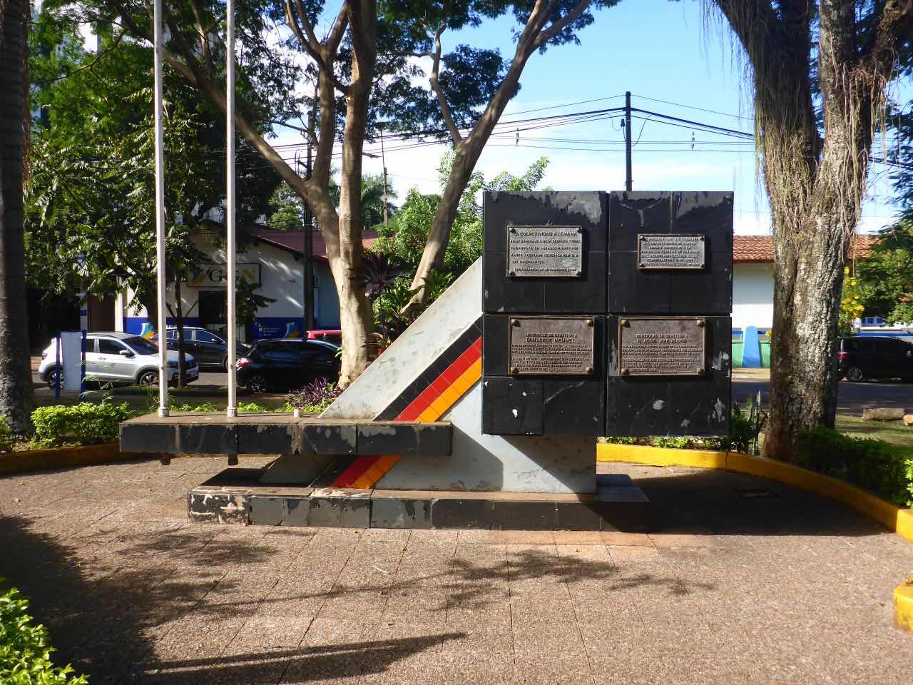 Und dann entdecke ich auch noch ein deutsches Monument, und die Inschrift verrät, dass man sich einerseits über die Immigranten freut. Und dann werden auch noch zwei Deutsche geehrt, die offensichtlich Gutes für die Stadt getan haben. Auf der Inschrift steht auf Deutsch „Unserem Helden Jorge Memmel zum Gedenken an seinen mutigen Einsatz während der großen Sturmkatastrophe über Incarnation am 20. September 1926 . Das gleiche steht dann auch mit dem Namen José Kreßner.
