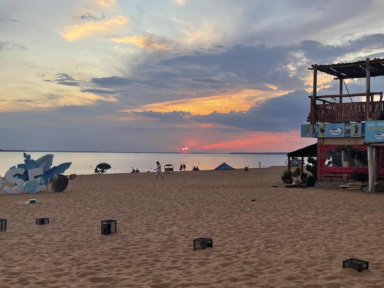 Nachmittags bin ich dann zum Strand runter, habe mich dort in die Sonne gelegt und bin auch mal im Rio Parana gewesen. Während ich da war wurde eine Bühne aufgebaut. Deshalb bin ich abends dann noch mal dahin gegangen und da wurde offensichtlich eine große Show vorbereitet. Es war viel Polizei da und selbst bei solch einer Massenveranstaltung war es eine sehr sichere Atmosphäre. Ich mag diese Stadt! Um den ganzen Schmerz zu vergessen habe ich mir dann noch einen Caipirinha gekauft und mich an den Strand gesetzt und der Sonne beim untergehen zugesehen. Auch nicht schlecht!