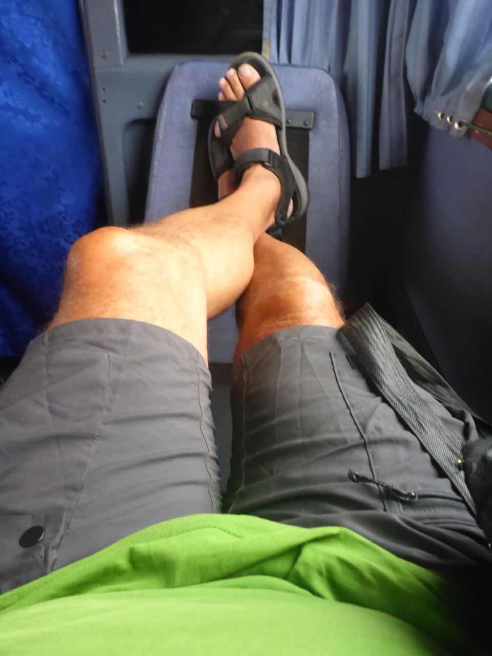 Circa eine halbe Stunde vor Ankunft wurde offensichtlich die Klimaanlage ausgestellt oder weniger kalt justiert. Das war quasi ein schonendes Auftauen, damit der Schock beim Aussteigen nicht so stark ist. Ich muss natürlich sagen, dass ich wirklich gut gesessen habe oder teilweise auch ein bisschen gelegen. Der Bus ist alt, aber Platz ist reichlich da. Trotzdem muss ich überlegen, ob ich nicht die alte 5 Stunden Regelung wieder einführen, weil knapp siebeneinhalb  Stunden ist schon lang und nicht spannend.