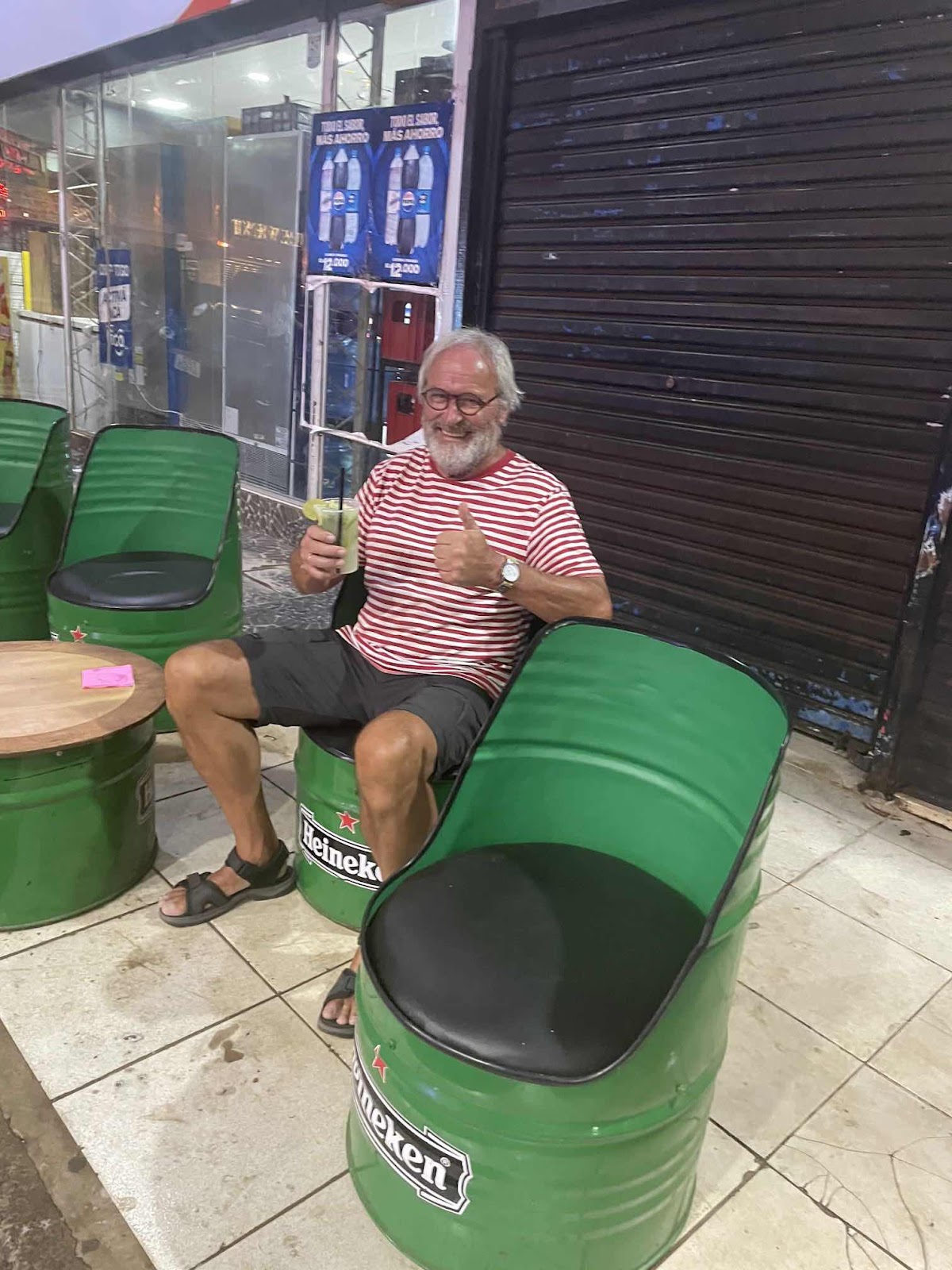Die Leute, die in zubereiteten, waren sehr freundlich und sparten auch nicht mit den Zutaten. Gegenüber von ihrem Stand standen ein paar aufgeschnittene Ölfässer als Sessel umgebaut, und da setzte ich mich gemütlich hin; wieder an einer schmutzigen Straße aber das Getränk genauso lecker wie das Essen vorher.