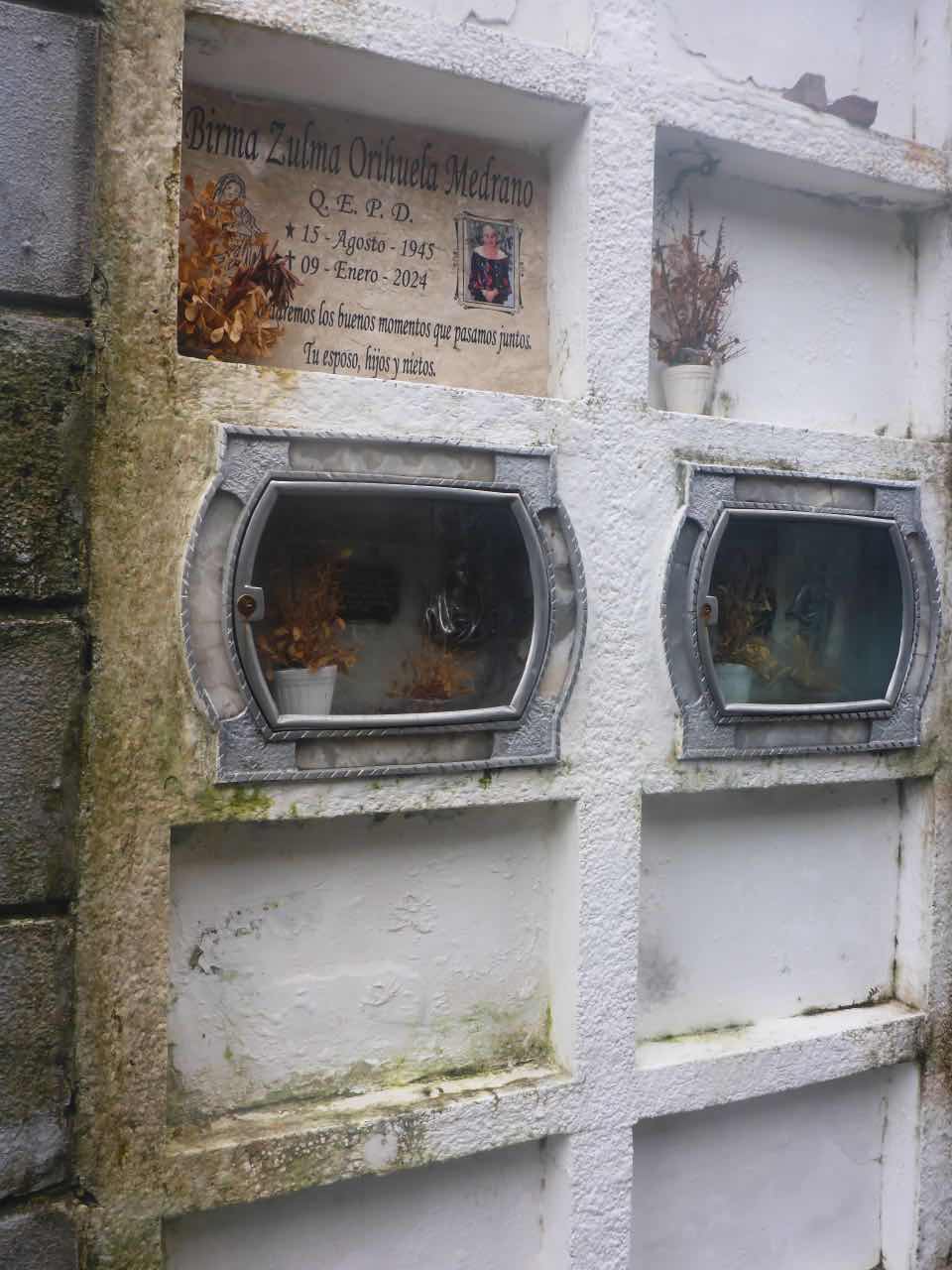 Eine der Gänge ist mit Paso de Notables bezeichnet. Also eine Straße, wo wichtige Leute wohnen. An den Gräbern ist jeweils ein QR-Code, damit man Näheres über die Menschen erfahren kann. Anderswo finde ich auch Schriftstücke von der Friedhofsverwaltung, die auf die Gräber geklebt sind.