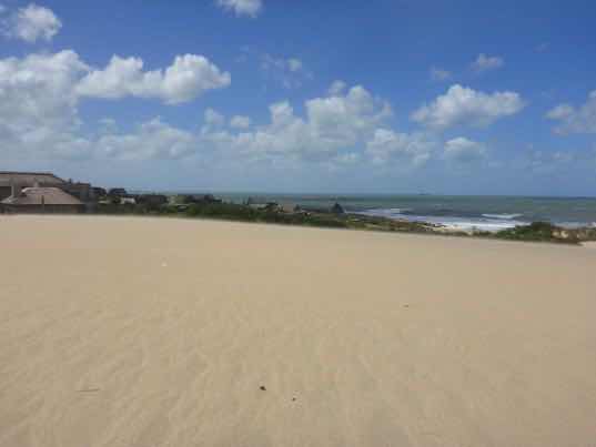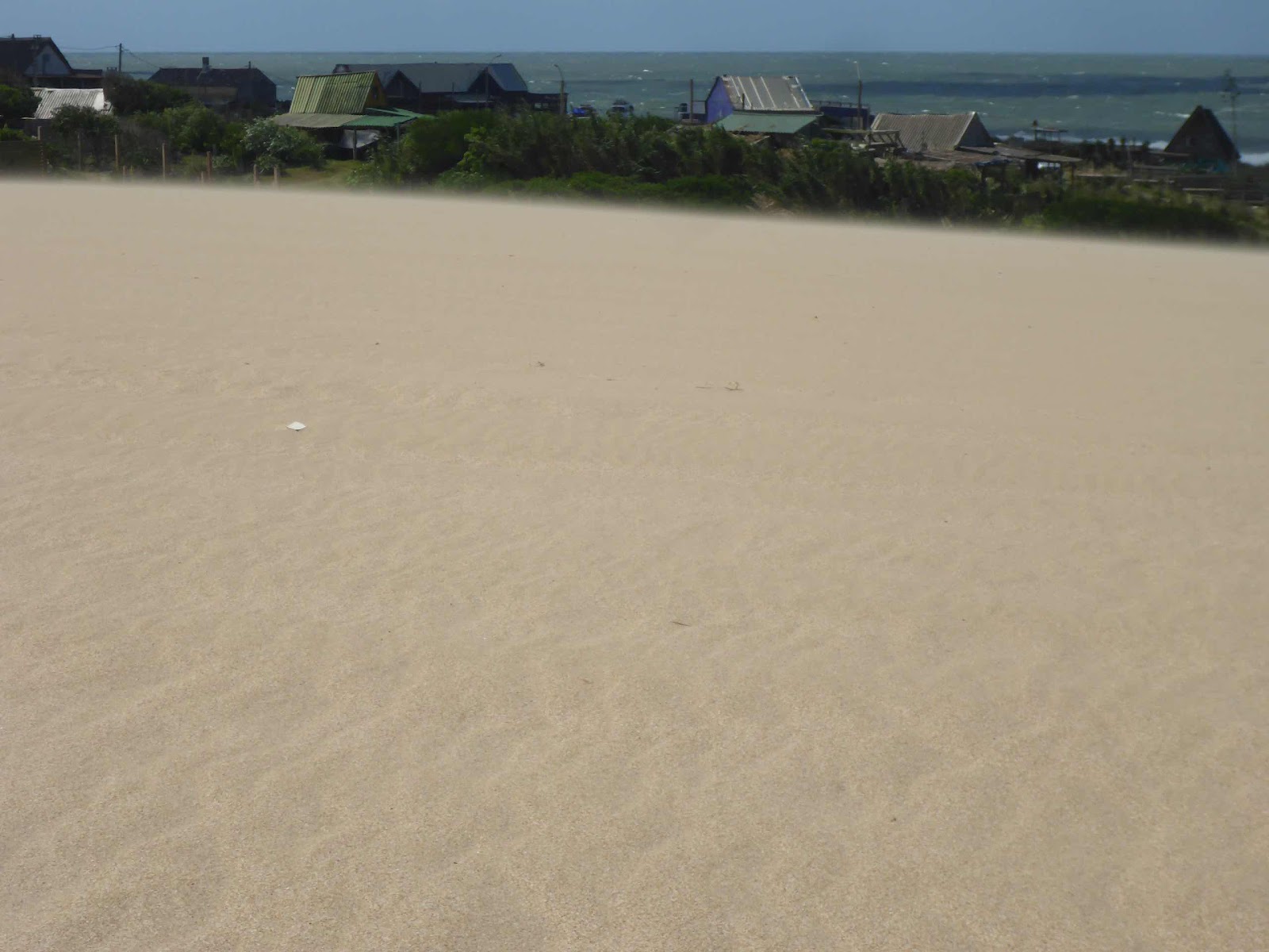 Wie aus dem Nichts taucht vor mir eine große Düne auf, sowas habe ich hier auch noch nicht gesehen. Super feiner Sand und oben auf dem Kamm weht der Wind den Sand beständig weg. Es ist windig heute, aber nicht direkt stürmisch. Vielleicht fünf Windstärken?
