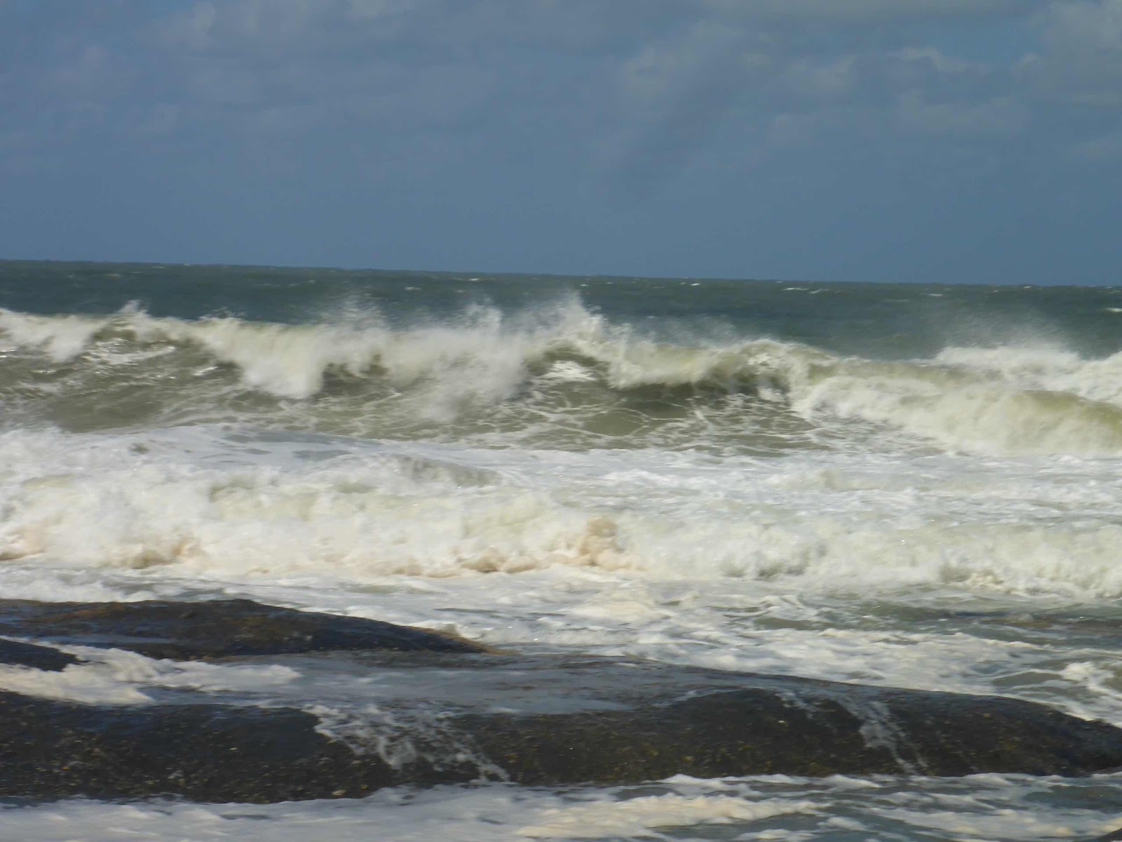 Wenn man die Wellen sieht, die hier jetzt bei gerade mal fünf Windstärken aufgeworfen werden, kann man gut nachvollziehen, dass jeder Kapitän gut daran getan hat, dieses Teufelskap weiträumig zu umfahren. Die Wellen brechen sich an den Felsen, und die Gisch fliegt teilweise über 3 m hoch.