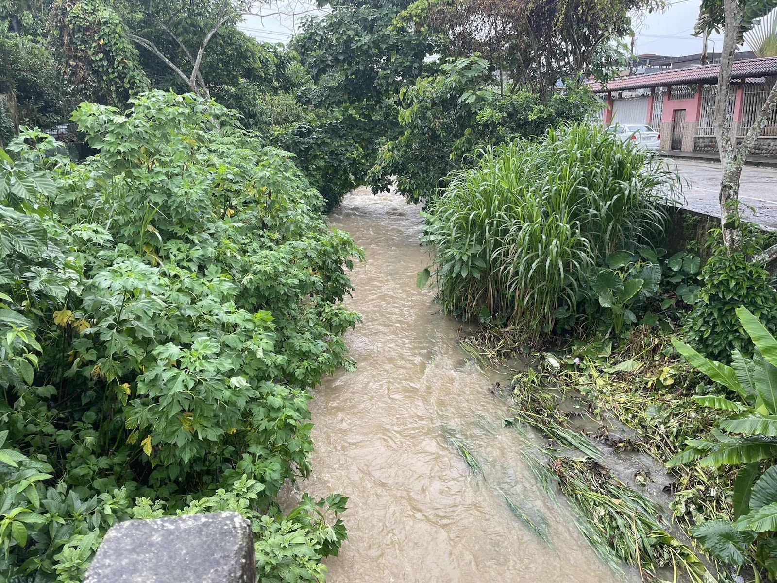 Gegen 15:00 Uhr hörte dann der Regen auf und auch sofort kam die Hitze wieder zurück. Auf dem Weg in die Stadt kam ich an einem kleinen Drecks-Bächlein vorbei. In den vergangenen Tagen floss da ein dünnes Rinnsal und vermochte den Schmutz und den Abfall nicht weg zu schwemmen.