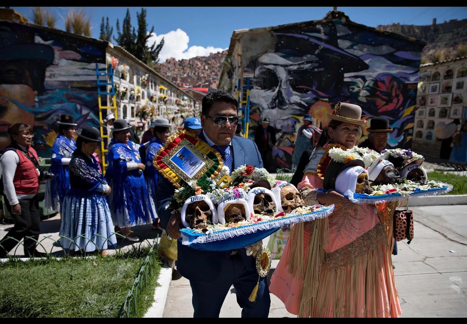 Am nächsten Morgen tragen Tausende von Gläubigen ihre Familienschädel aus den Schreinen in ihren Häusern zum Friedhof. Der große Anlass: der Día de las Ñatitas oder Tag der Ñatitas – eine verniedlichende Bezeichnung für die Schädel, die sich mit „Mopsnasen“ übersetzen lässt. Die Menschen beten, singen und tanzen in den Straßen der Stadt. Das große Fest wird jedes Jahr am 8. November von der zweitgrößten indigenen Gruppe des Landes begangen, den Aymara. Dabei mischen sich Bräuche aus dem Katholizismus mit dem vorkolonialen Inka-Glauben, um den Geistern zu danken, die den ñatitas innewohnen – sowohl jenen in den Gräbern als auch denen, die das ganze Jahr über an der Oberfläche verweilen.