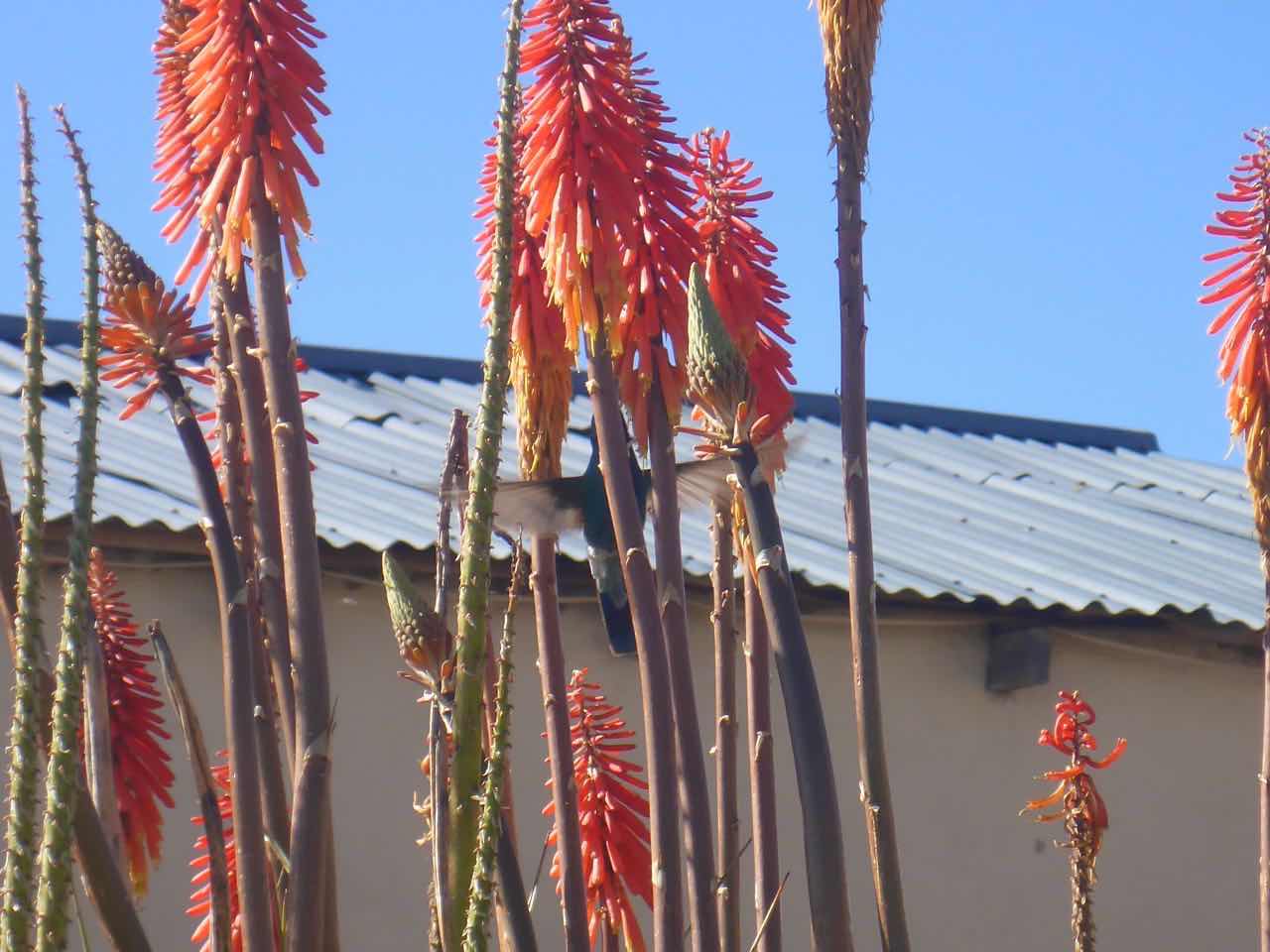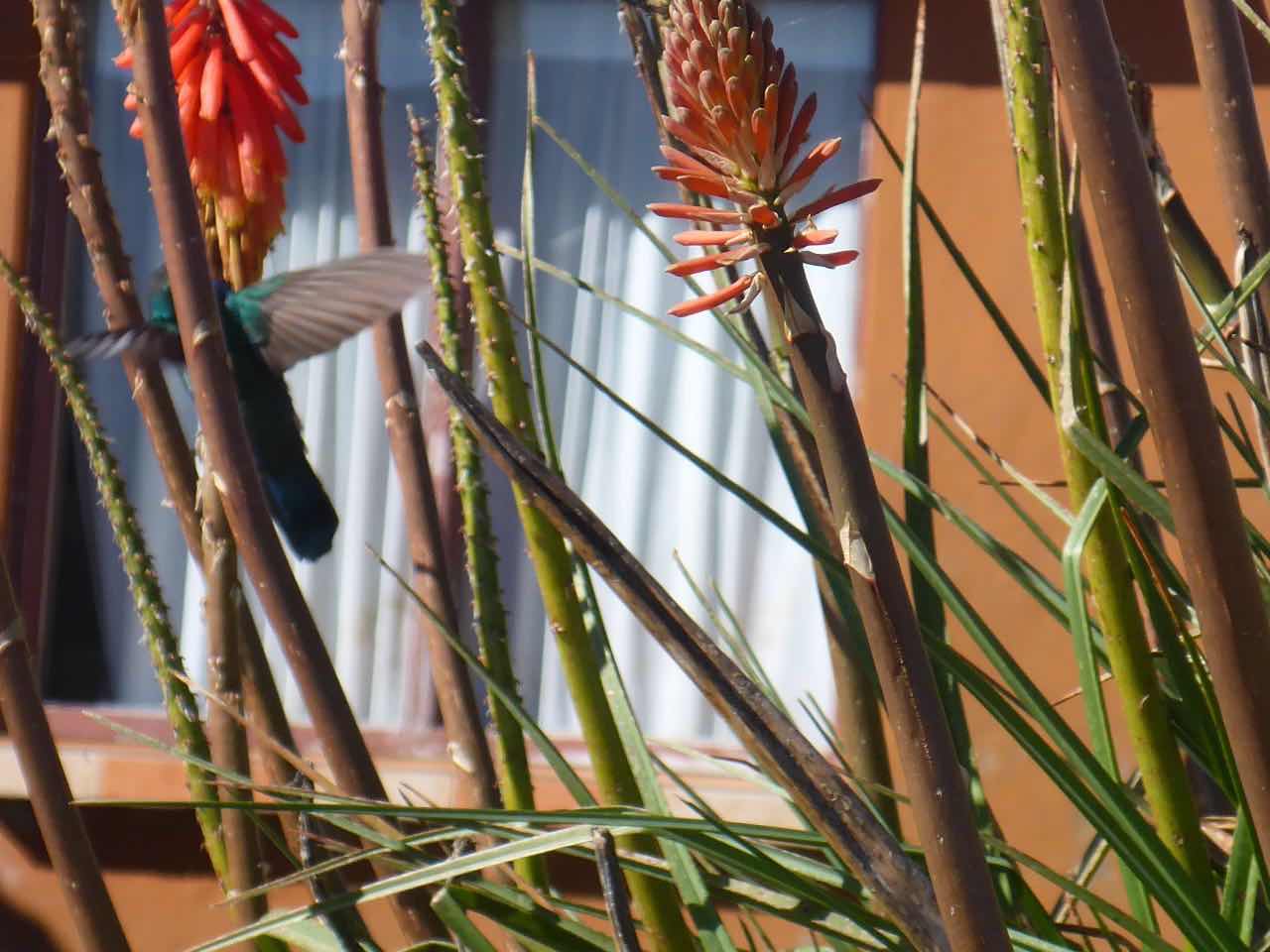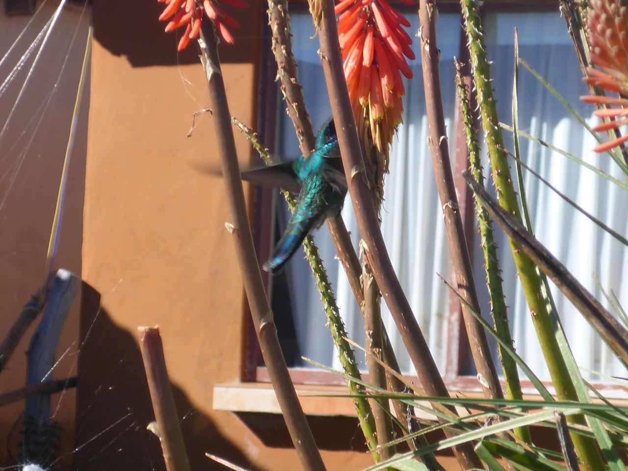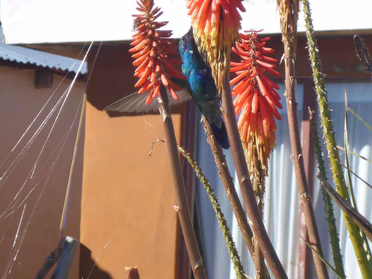Wenig später entdeckte ich an einer Blume einen sehr hektischen Colibri, der mit wahnsinnigen Flugmanöver zu den einzelnen Blüten flog, um da den Nektar rauszuholen. Zugegeben: sowas habe ich noch nie vorher gesehen.