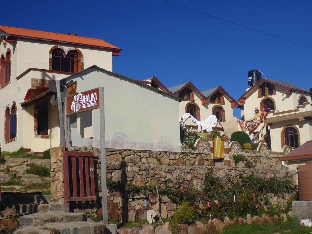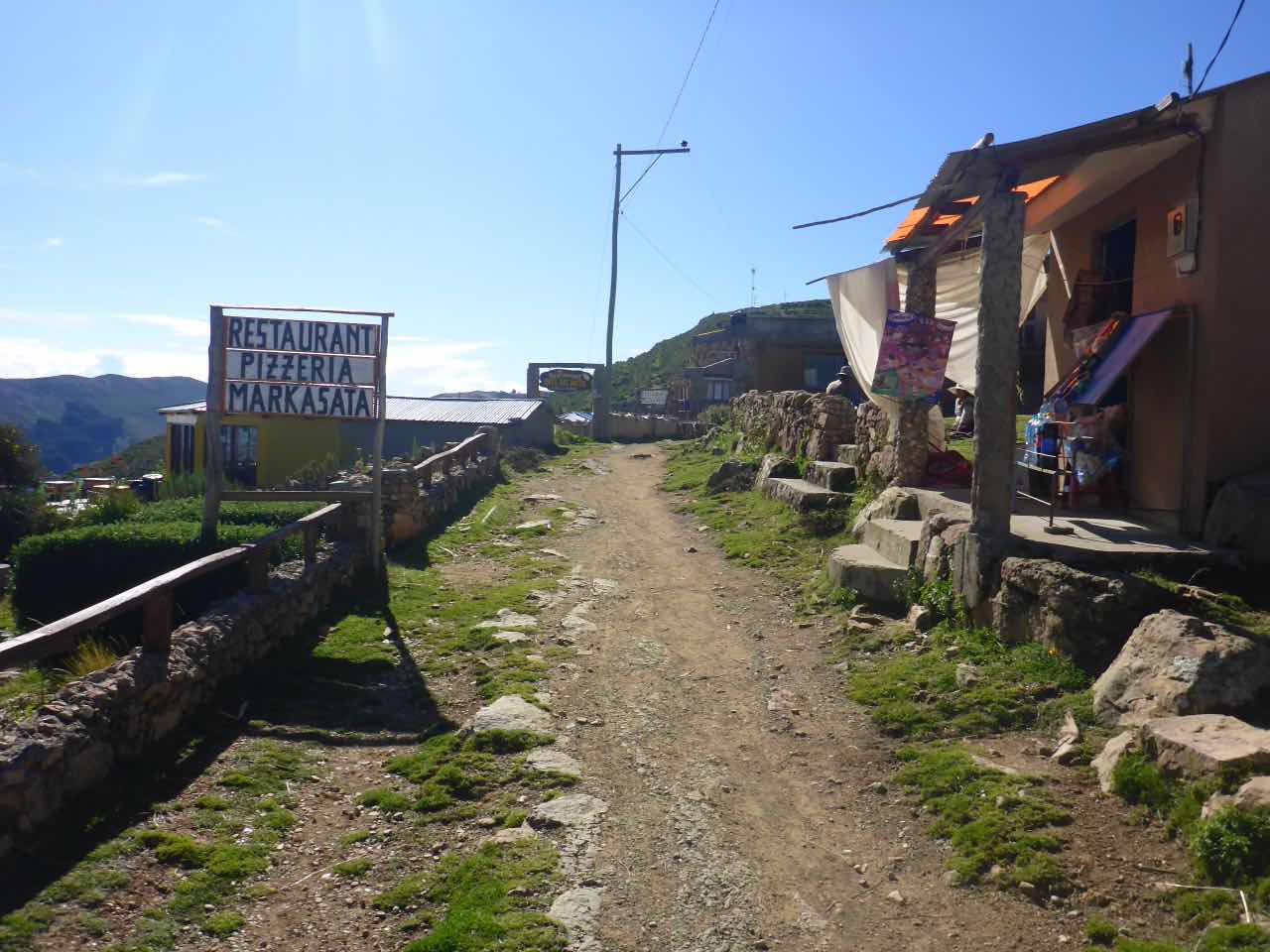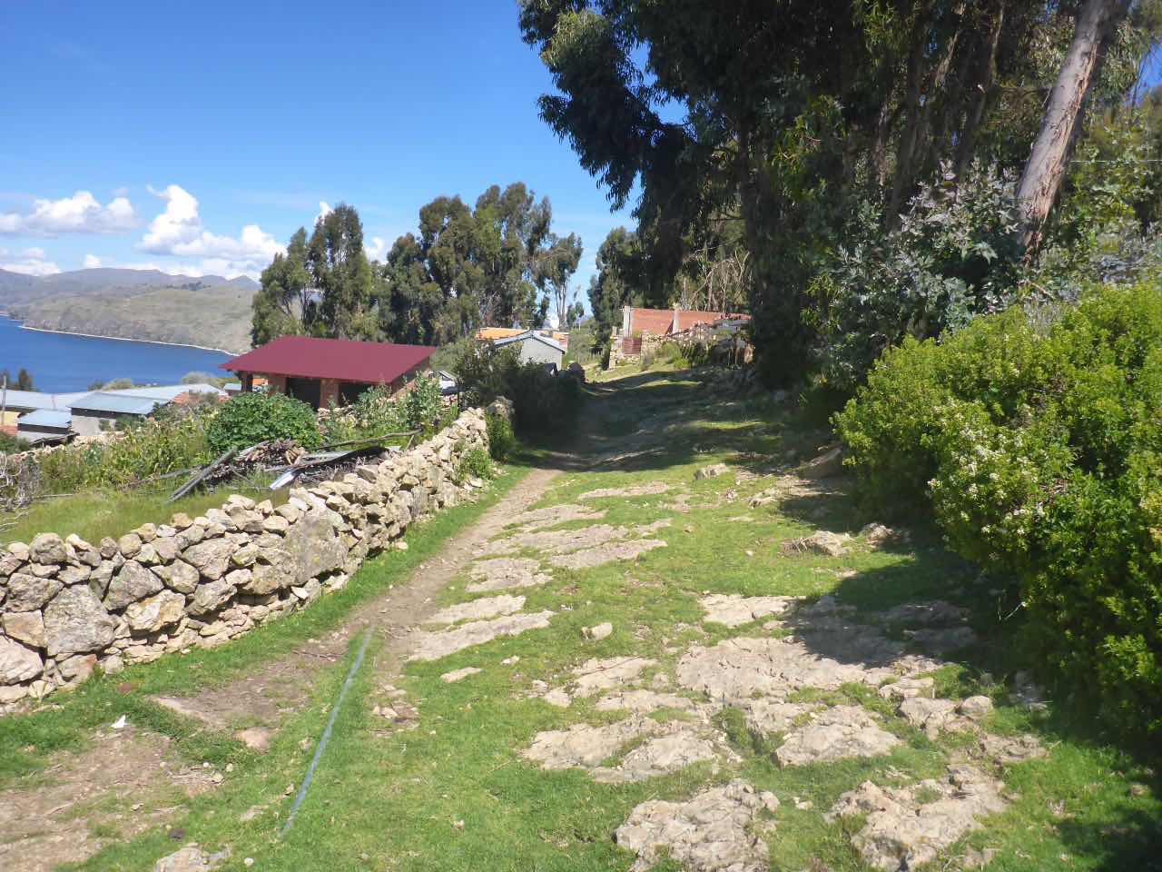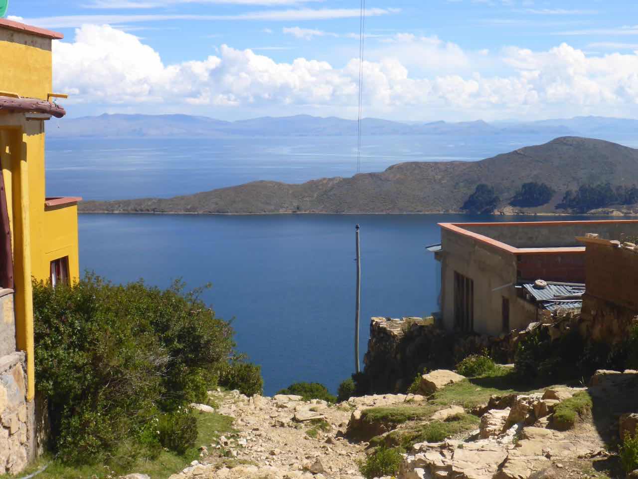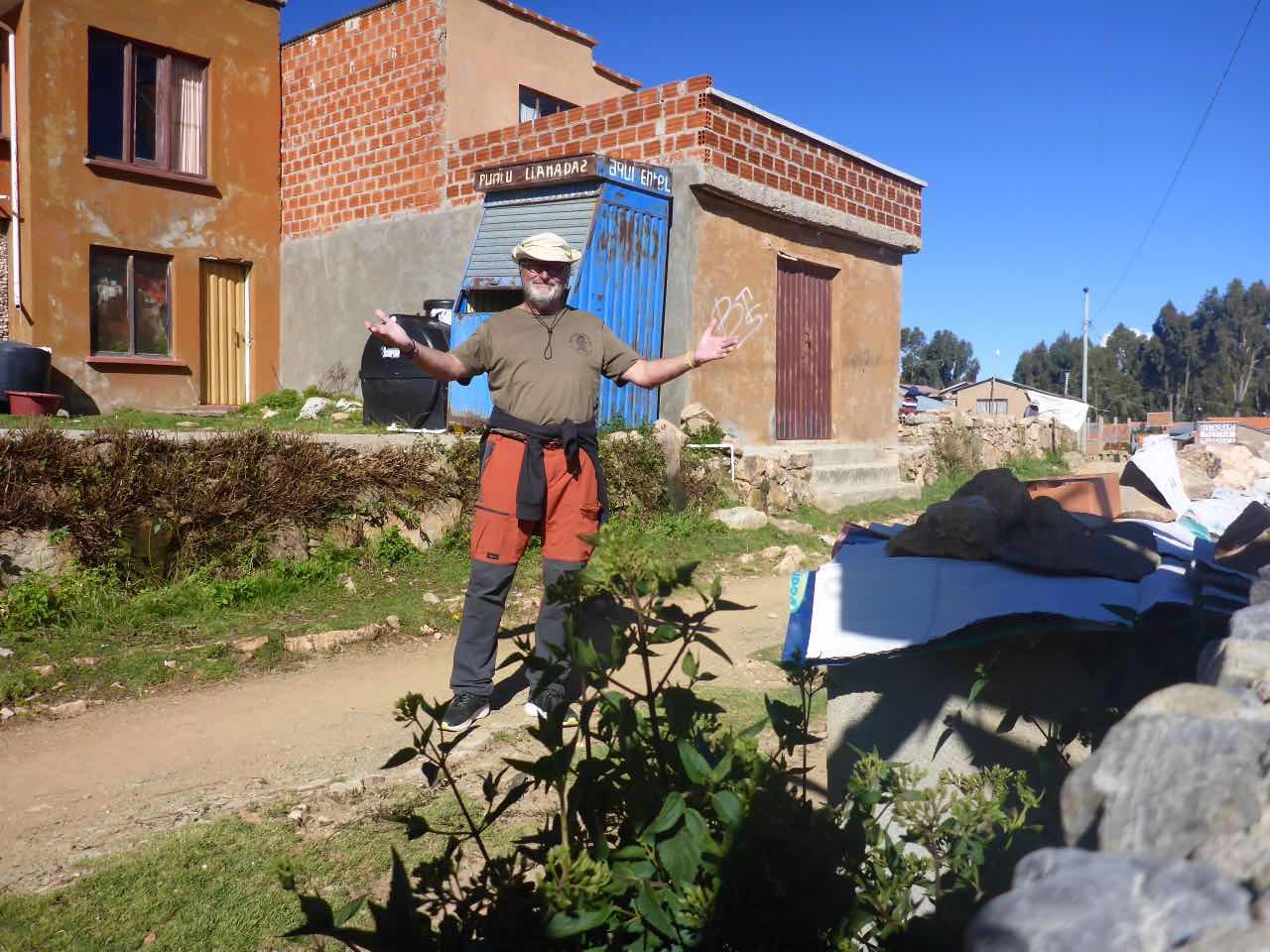 Aber wo Sonne ist (Sonneninsel) ist auch Schatten. Die Unterkunft, die ich hier in Yumani gebucht habe, schrieb mir, ich solle wenig Gepäck mitbringen, da der Weg zum Dorf über einen alten Inka-Pfad führt und dass man dafür ca. 25 Minuten braucht. Er ginge überwiegend bergauf über alte Treppenstufen im Fels. Als ich vor Jahren schon mal am Titicaca war, hatte ich den von der peruanischen Seite aus besucht. Und ich hatte auch da eine Tour zu der Insel Taquile gemacht, die mitten im See liegt. Vom Anleger aus ging es auch über eine mörderisch steile Strecke hinauf ins Dorf und am Schluss über eine fast 600 stufige Treppe, die wegen der Uneinheitlichkeit schwer zu gehen war (klettern wäre hier das bessere Wort). Hier gibt es also auch eine Treppe. Spannend. 25 Minuten lang Treppensteigen in einer Höhe von ca. 3800m. Man kann sich das Leben auch schwer machen…