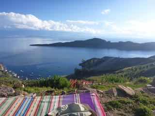Aber als ich dann auf dem Grat ankam, gab es eine neue Belohnung: ich konnte beide Seiten der Insel sehen, auf der einen Seite Bolivien, auf der anderen Seite Peru.