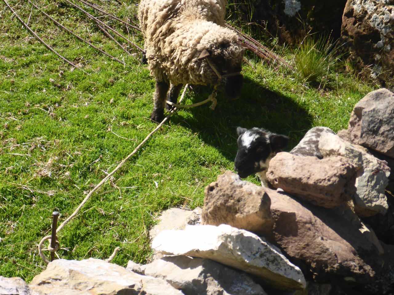 Dann kam eine Frau auf mich zu und fragte ob ich zu dem Hotel Quilla Wasi wollte? Ich nickte und sie bereitete ihr Tuch auf dem Boden und sagte, ich soll meinen Rucksack da reinlegen . Dann schnürte sie das Bündel zu, packte sich das auf den Rücken und sagte: Vamos.
