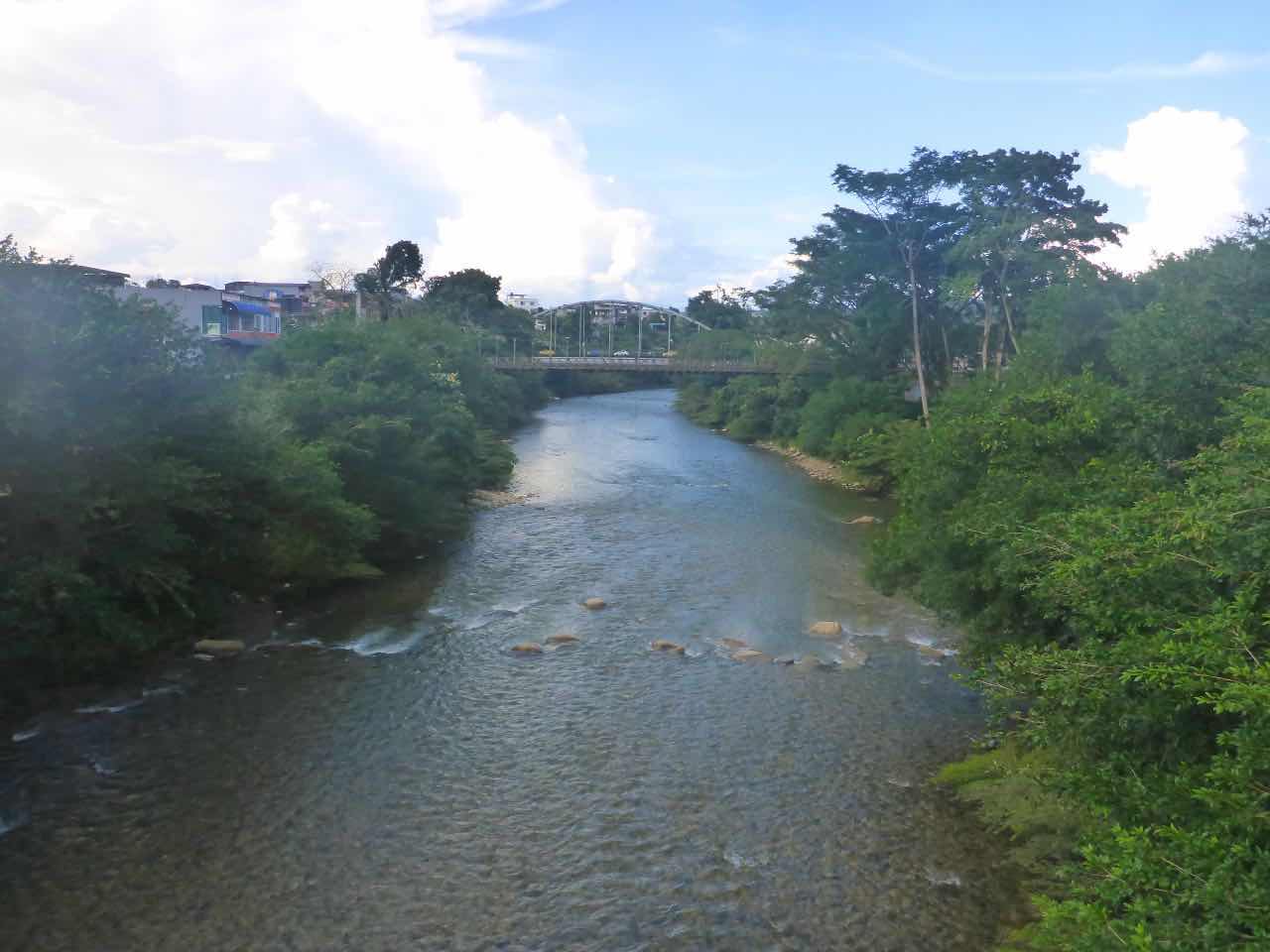 Ich gehe über die recht laute Hauptstraße zum Park Amazonica. Hier ist die Kneipenszene, und das Besondere an dieser Stelle ist, dass hier die beiden Flüsse zusammen fließen, der Misahualli und der Rio Tena. Vielleicht gehe ich heute Abend hier was essen, mal sehen.