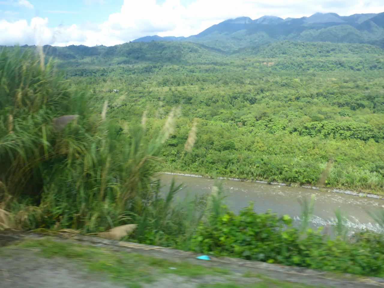 Es fällt mir schwer, die Umgebung zu beschreiben, weil sie so abwechslungsreich ist. Steile Berge oder tiefe Täler, Flussläufe und kleine Dörfer; es ist unglaublich. Ich versuche Fotos zu machen, aber dadurch, dass ich nicht nach vorne sehen kann sondern nur zur Seite aus dem Fenster bin ich immer zu spät. Also lasse ich es.