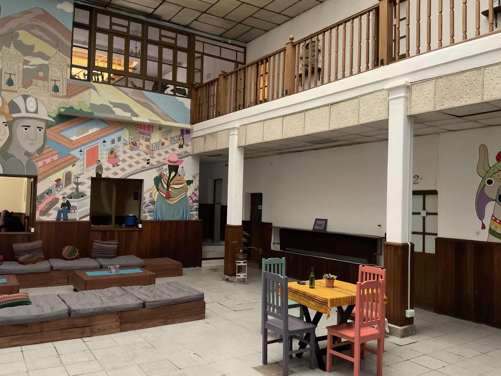 Auf dem Weg in komme ich an einem imposanten Haus vorbei. Es ist eine Beschreibung angebracht und demnach ist es das ehemalige Haus des reichsten Bergmannes hier in Potosi und wird zur Zeit als Schule benutzt. Ich weiß, dass man da nicht rein darf, aber irgendwie fand ich es doch zu interessant.