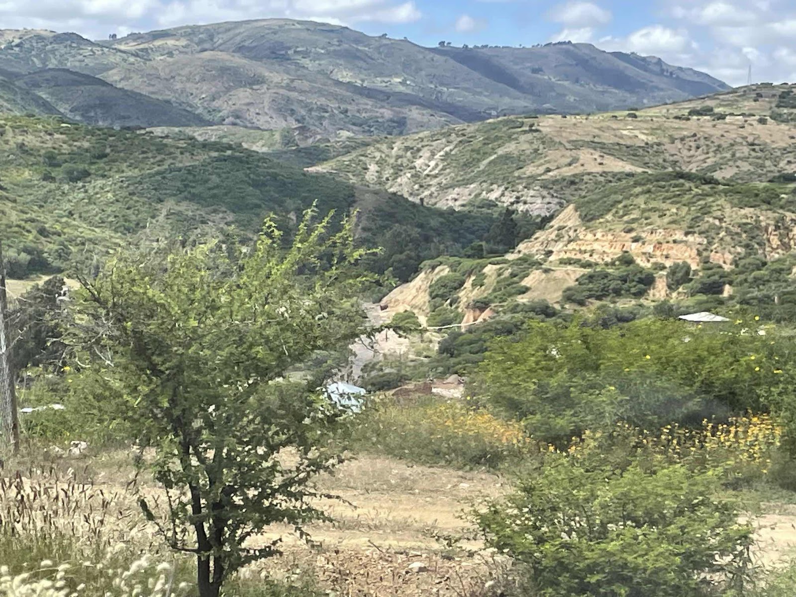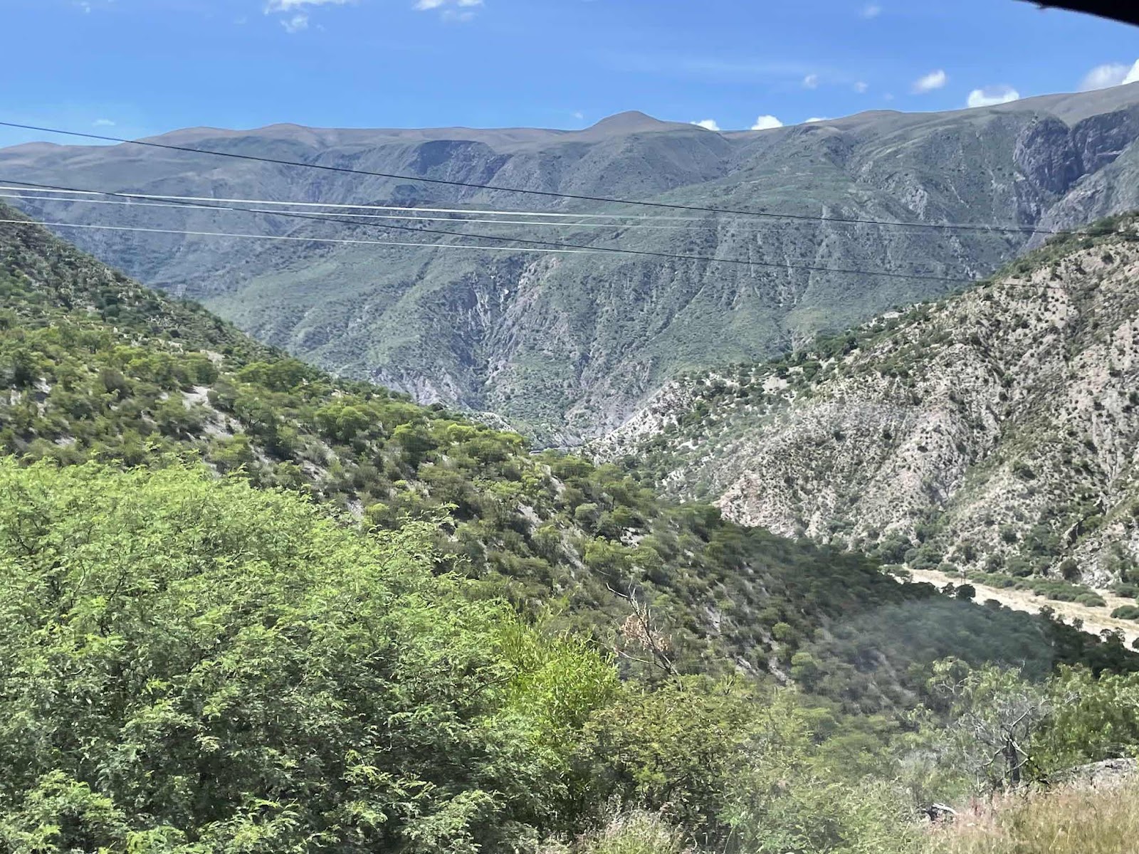 Wir sind in den Bergen. Es ist wirklich beeindruckend, noch gibt es etwas grün, zwar keine Bäume mehr, aber kleine Sträucher. Wir passieren ein ausgetrocknetes Flussbett und sehen in der Ferne weitere Berge und relativ selten auch einmal ein Haus oder ein Gehöft. Ich mach ein Fotos und der Kokablätterliebhaber gibt mir durch Zeichen zu verstehen, dass das eine tolle Landschaft ist.