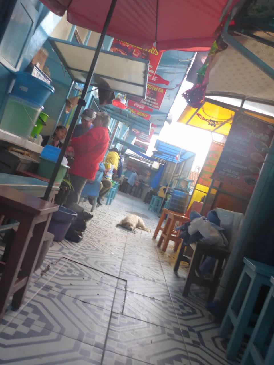 Die Leute packen alle ein und auch in der Comida spült man das Geschirr ab. Daneben finde ich noch einen anderen Markt, der überdacht ist. Da es gerade angefangen hat zu regnen, begrüße ich das sehr.