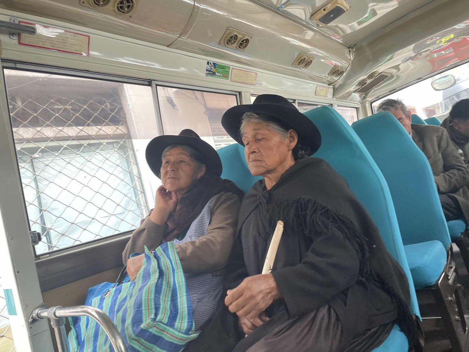 Im Mikro-Bus ist es sehr eng, aber ich bin froh, dass ich nicht zu Fuß gegangen bin. Wenn ich sehe, wie der alte Bus sich die Berge hochquält, die ich vor ein paar Tagen zu Fuß gegangen bin, ist das eindeutig die bessere Wahl. Die Sonne scheint, aber die Wolken hängen ziemlich tief. Laut Wetterbericht soll es heute auch nicht so warm werden hier, aber in Potosi wird es noch kälter sein.