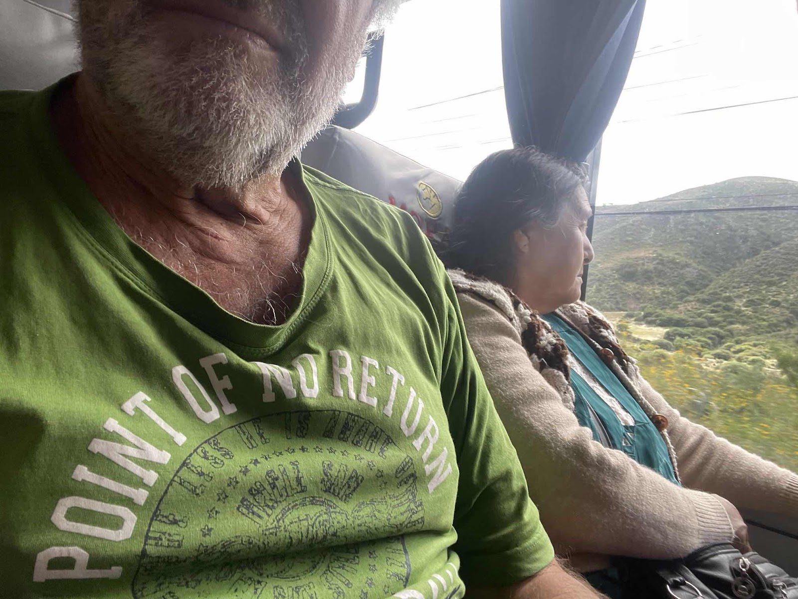 Ich nicke ihm freundlich zu und bestätige das. Der Bus mag nicht bequem sein, aber die saubere Scheibe und die Landschaft machen das wett.