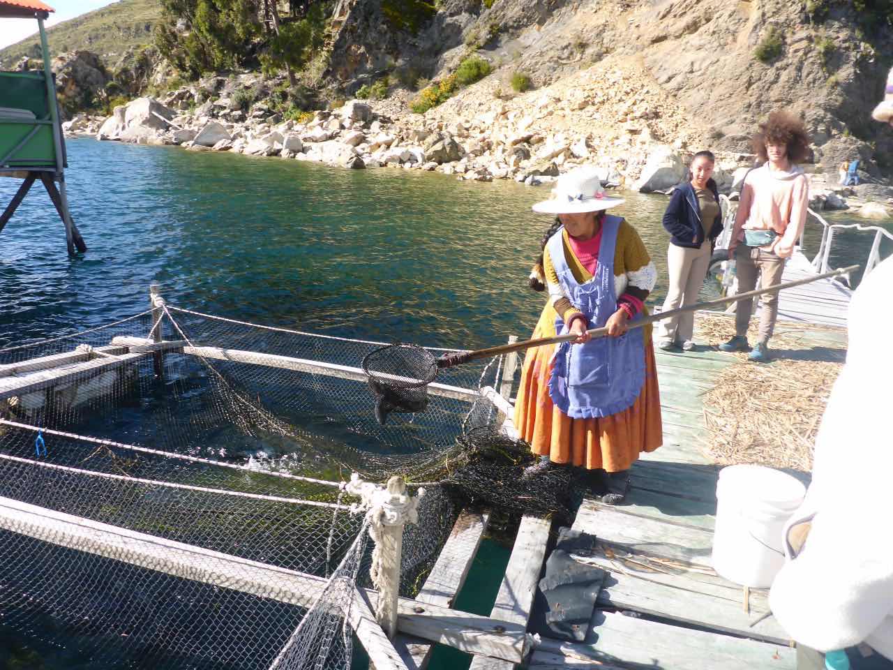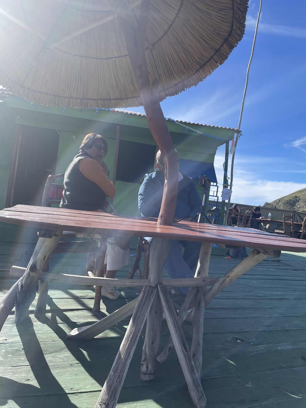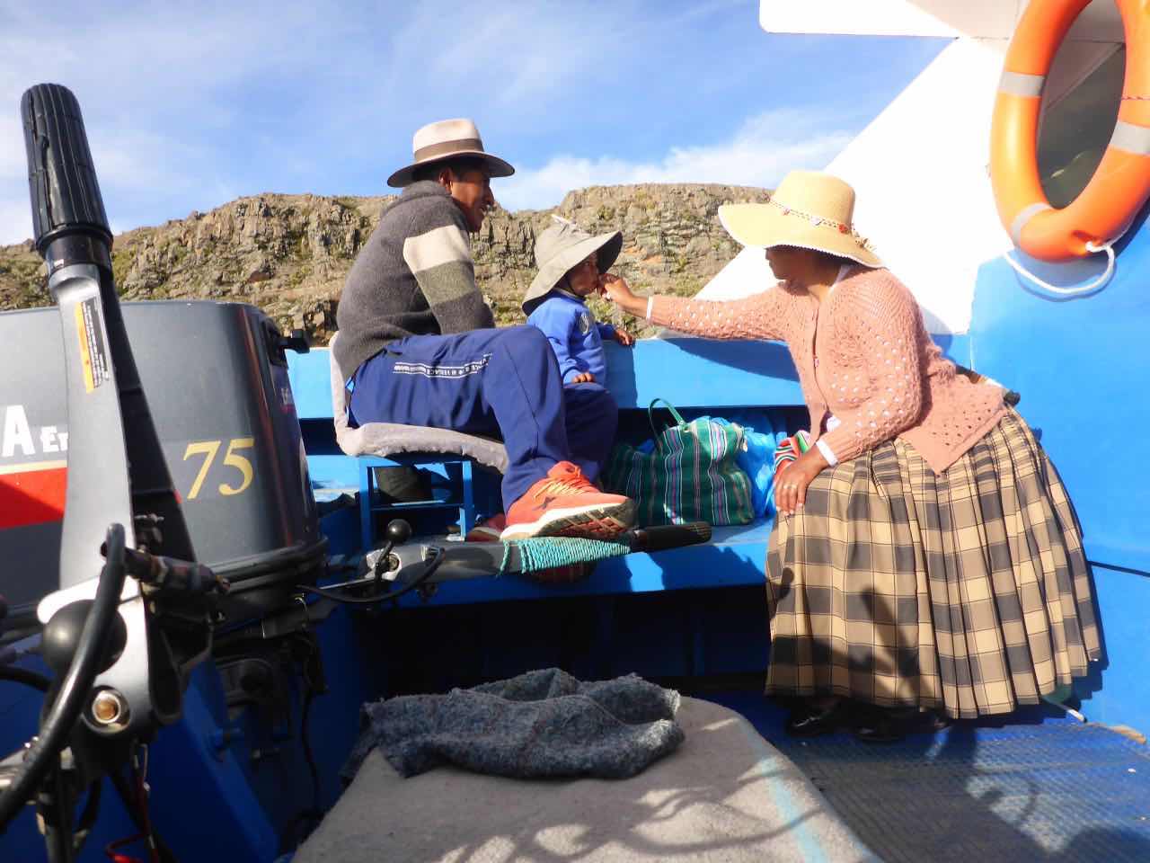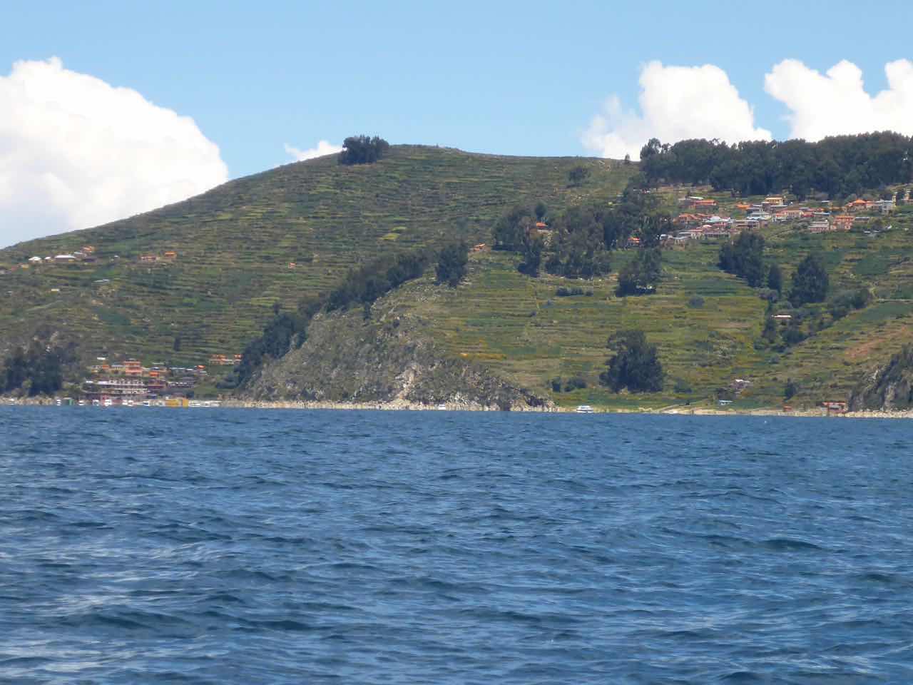 Dann kommen wir an der Mondinsel, an der Isla de la Luna an. Hier auf der Insel leben ungefähr 200 Leute und sie betätigen sich im Fischfang, Schafzucht, Landwirtschaft und Tourismus. Es gibt hier eine Schule, in die die Kinder bis zum fünften Schuljahr gehen können. Strom wird hiermit Solarpanels gewonnen und Wasser liefert der See.
