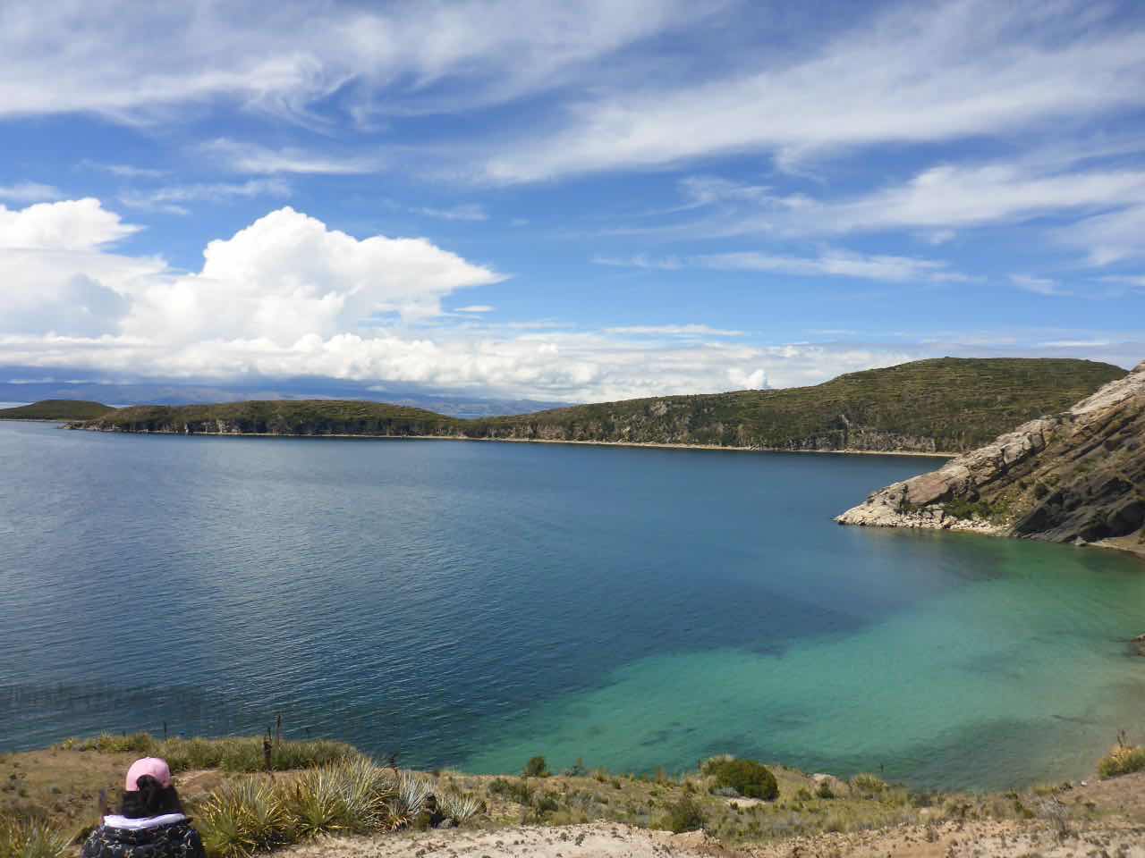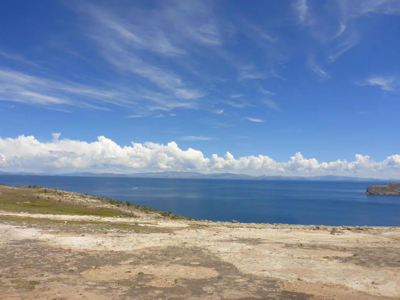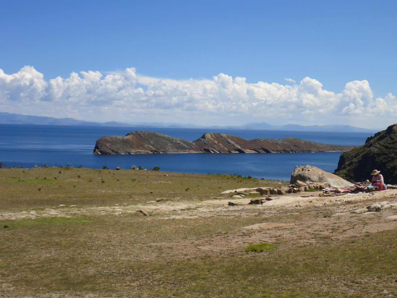 Auf der Sonneninsel geht es natürlich wieder mal ziemlich steil den Berg hinauf und oben ist dann eine größere Inkastätte. Wenn man auf dem Kamm angekommen ist, sieht man auf der einen Seite Peru und auf der anderen Seite Bolivien. Die Sonneninsel hat fast das ganze Jahr über 25°und die Wassertemperatur beträgt circa 17°.
