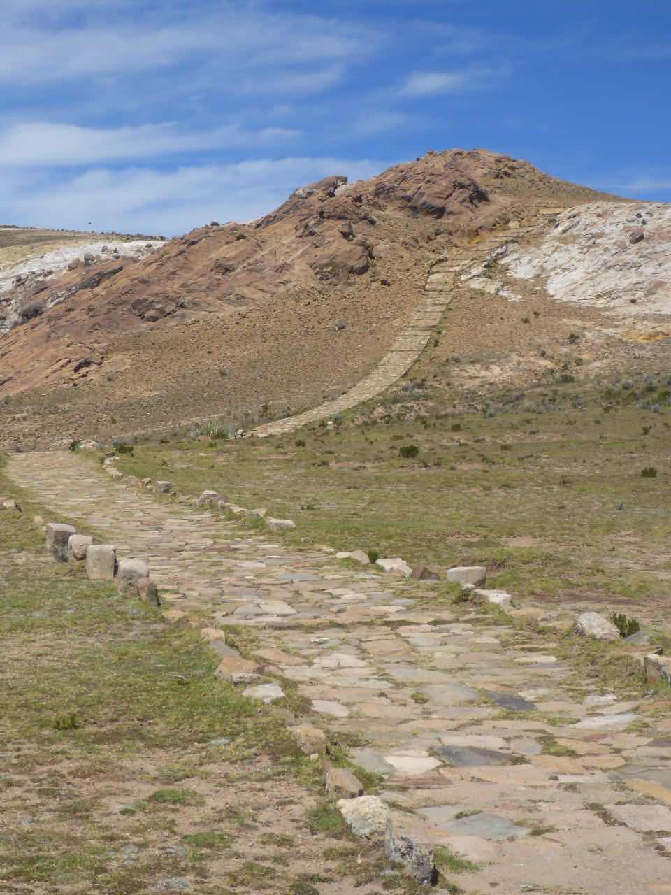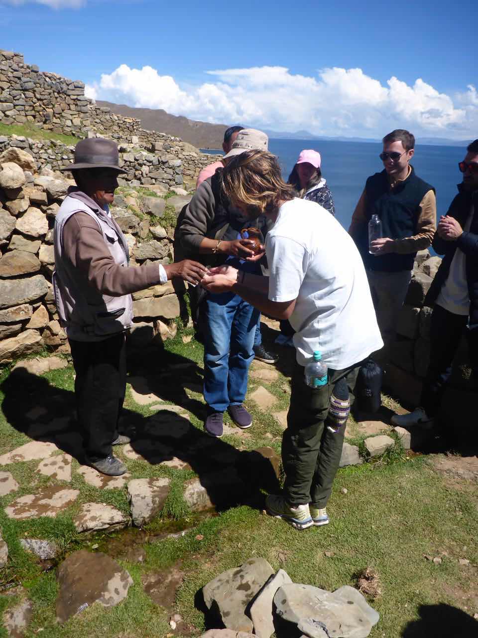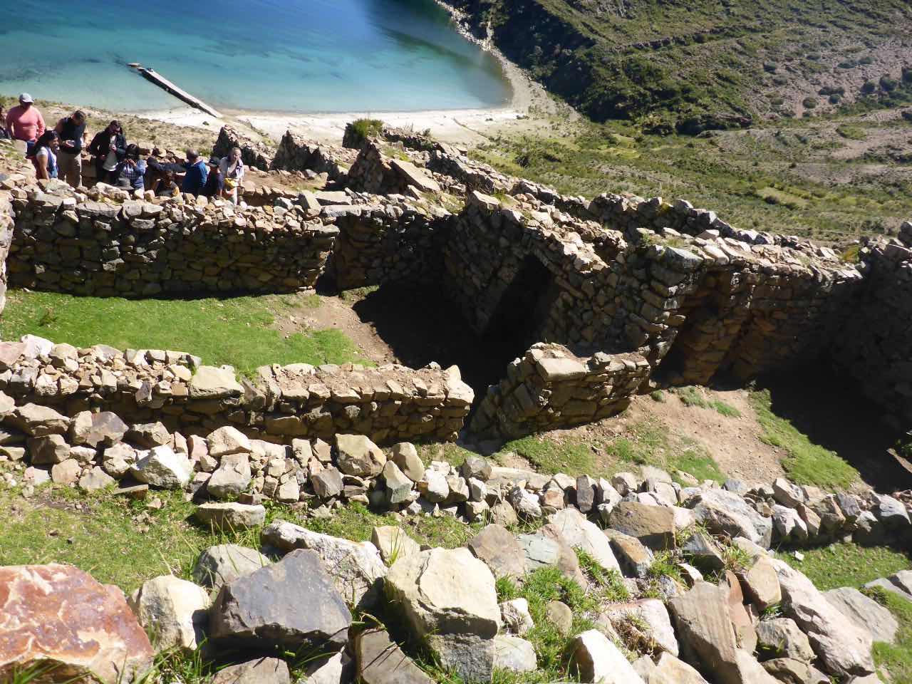 Auf der Sonneninsel geht es natürlich wieder mal ziemlich steil den Berg hinauf und oben ist dann eine größere Inkastätte. Wenn man auf dem Kamm angekommen ist, sieht man auf der einen Seite Peru und auf der anderen Seite Bolivien. Die Sonneninsel hat fast das ganze Jahr über 25°und die Wassertemperatur beträgt circa 17°.