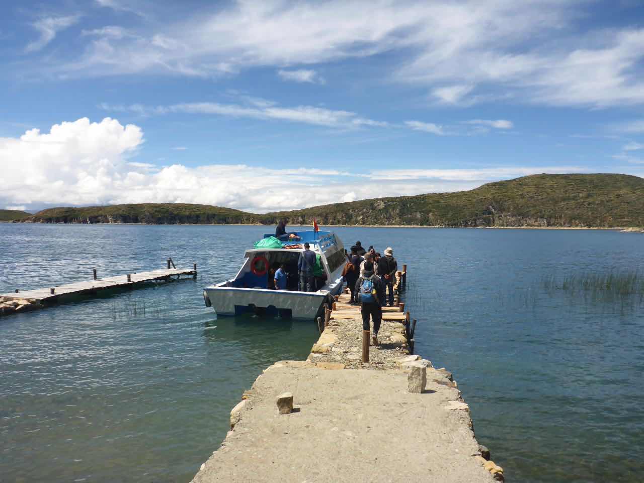 Heute mache ich eine kleine Insel Tour. Es geht zur Sonneninsel, zur Mondinsel und zu einer schwimmenden Insel. Ich fahre zwar morgen sowieso zur Sonneninsel, aber sie ist relativ groß und heute bin ich im nördlichen Teil, morgen im südlichen. Ich bin etwas früher zum Treffpunkt gegangen und konnte so wenigstens noch eine halbe Tasse richtigen Kaffee trinken. Das Boot, mit dem wir fahren, ist ein einfaches Vollholzboot mit zwei 75 PS Yamaha Außenbordern. Die Tour würde den ganzen Tag lang dauern.