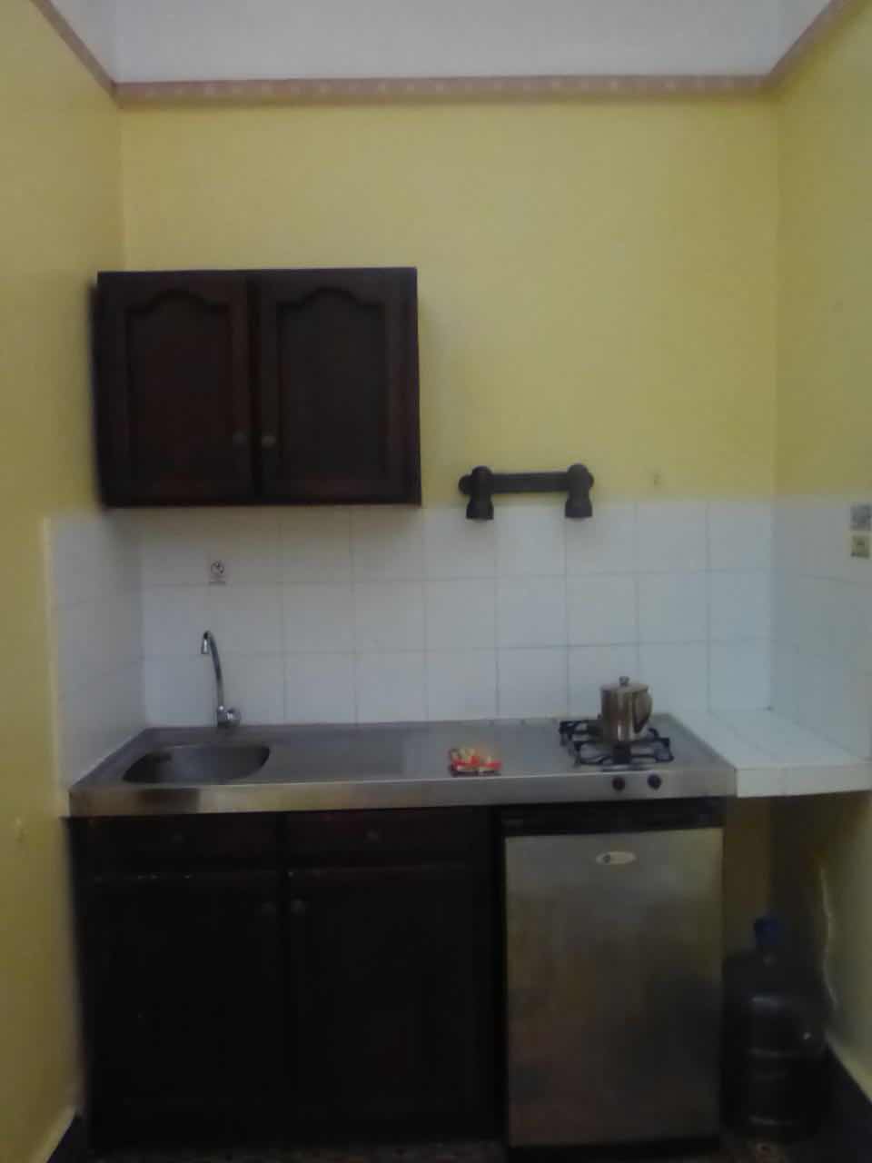 Das Einchecken geht schnell. Mein Zimmer ist im 1. Stock und besteht aus Wohn-Schlafraum mit Kochnische, Bad und Balkon. Kein Klima, dafür ein Ventilator.