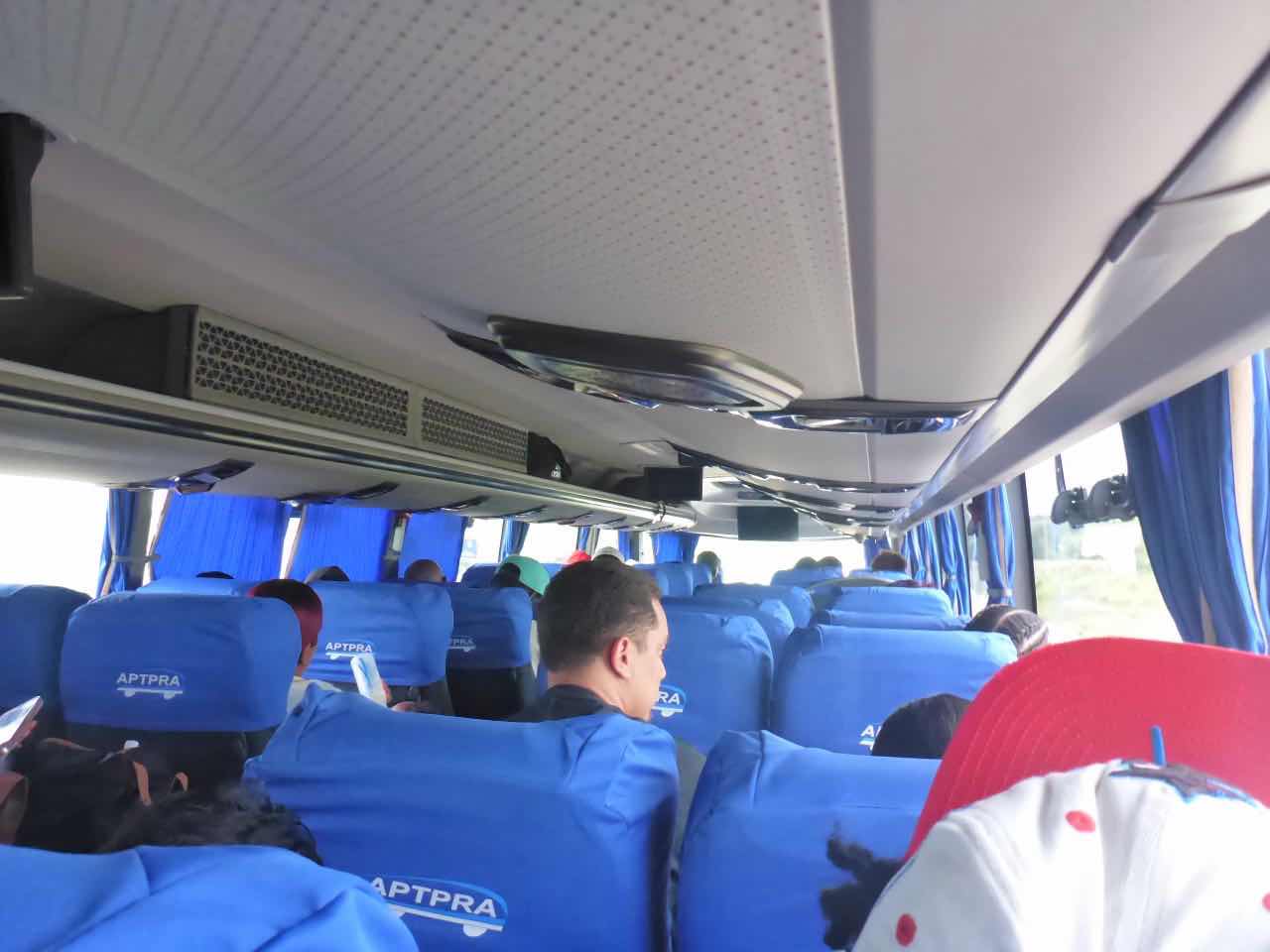 Das Boarden begann schon um 10:40. Der Bus ist sehr neu und sauber. Der Typ, der vor mir sitzt macht als erstes den Sitz auf Liegeposition und fängt lautstark an, zu telefonieren. Ich liebe ihn schon jetzt.