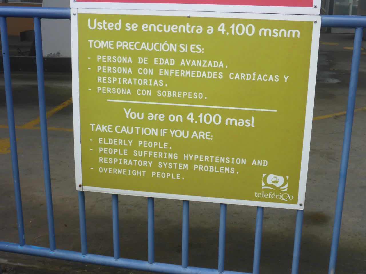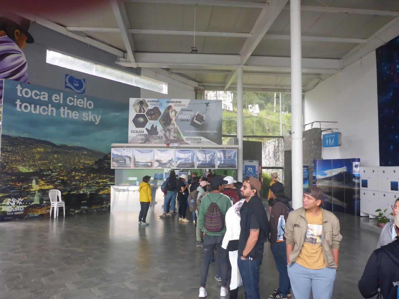 Wir sind hier auf 3200 m, ich bin gespannt, wie weit es noch nach oben geht. Um mich herum höre ich mehrere deutsche Stimmen. Das sind aber auch die ersten hier in Ecuador, glaube ich. Die Fahrt dauert dann insgesamt 18 Minuten und geht über zweieinhalbtausend Meter. Als wir oben ankommen, sind wir auf 4050 m.