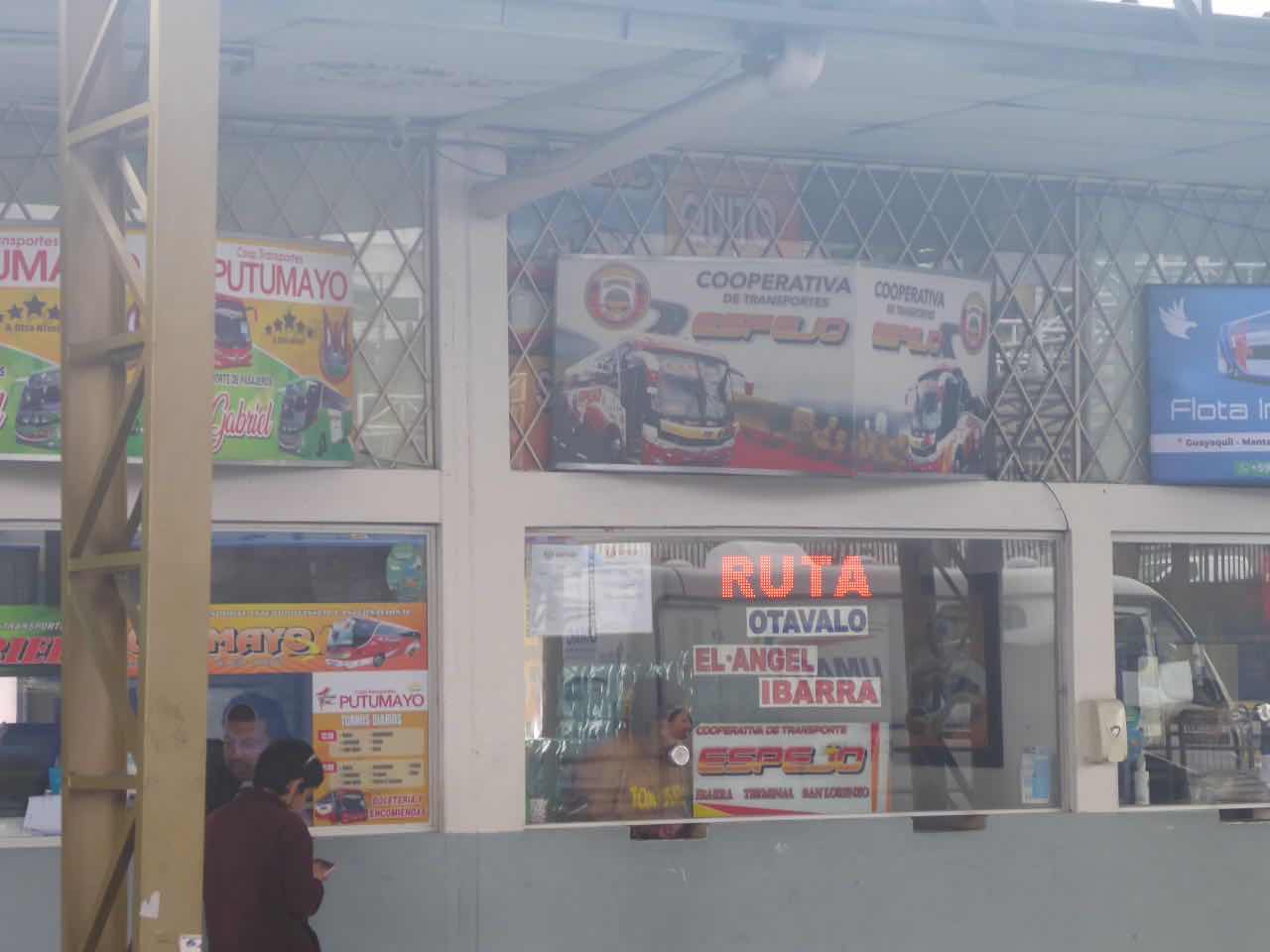 Am Terminal kann ich mich dann beruhigen. Die Busse nach Otavolo fahren offensichtlich stündlich und auch am Wochenende. Und auch in der gleichen Frequenz zurück. Das war im Internet so nicht herauszubekommen. Deshalb war ich ein bisschen nervös, vor allem weil ich von Otavolo aus direkt zum Flughafen fahren will. Das sollte nicht schiefgehen. Die Frau gab sich viel Mühe, mir den Fahrplan zu erklären und ich fragte viel zurück, aber irgendwann hatte ich es kapiert.