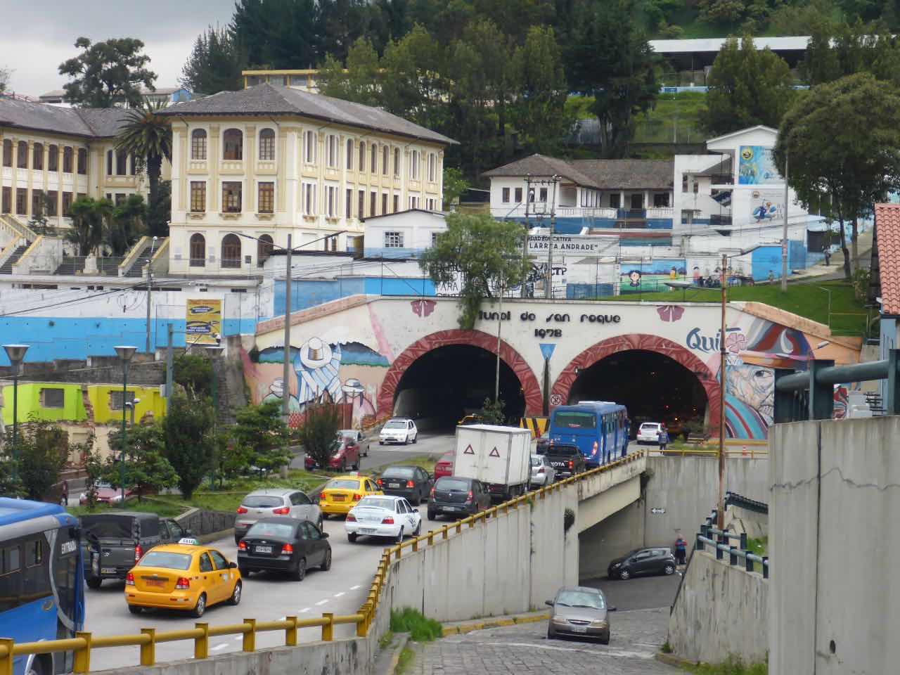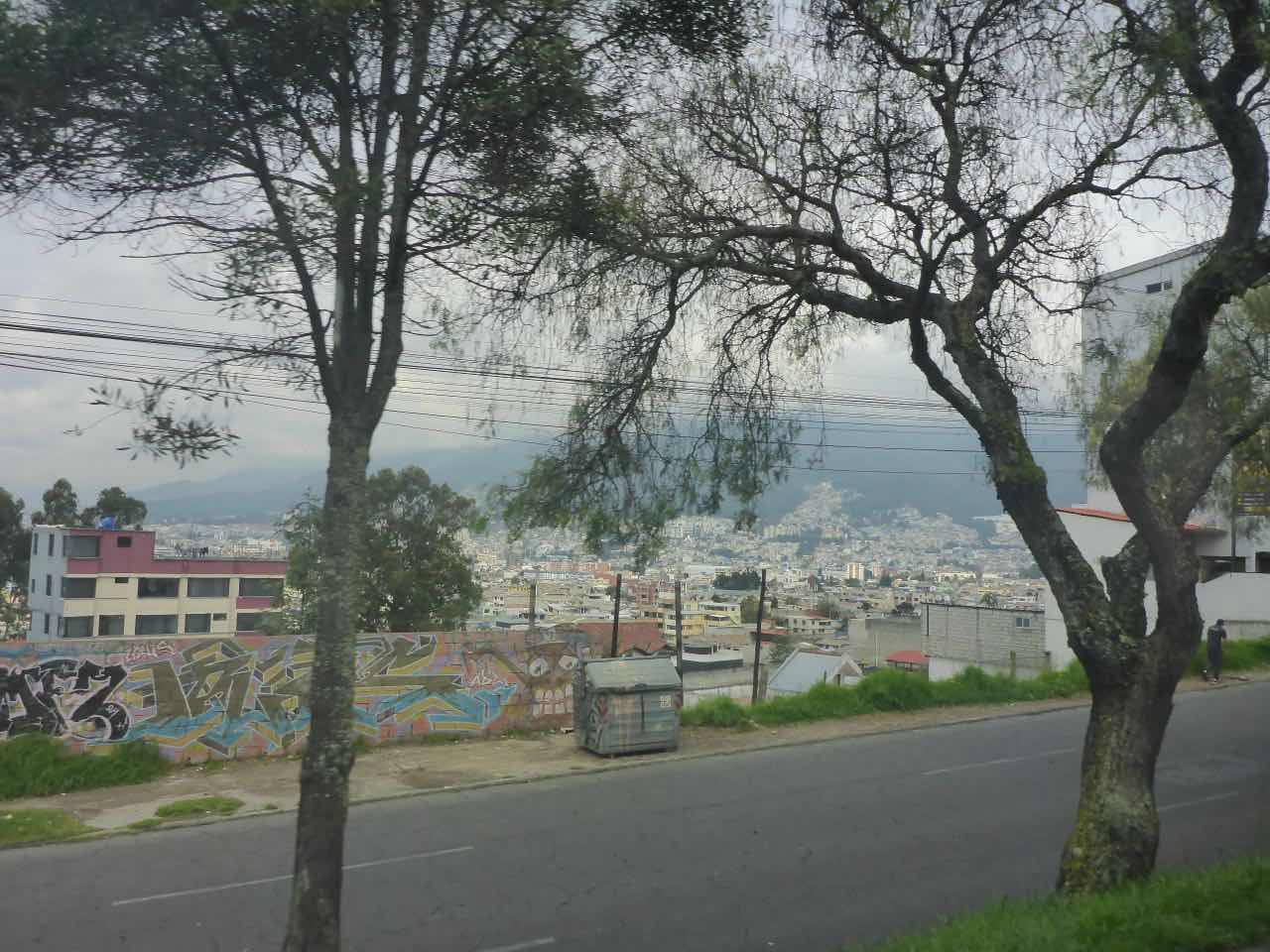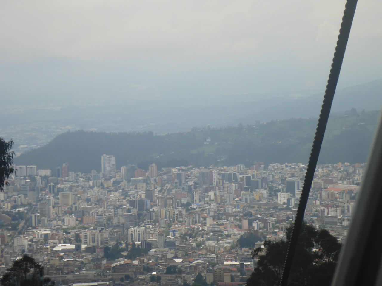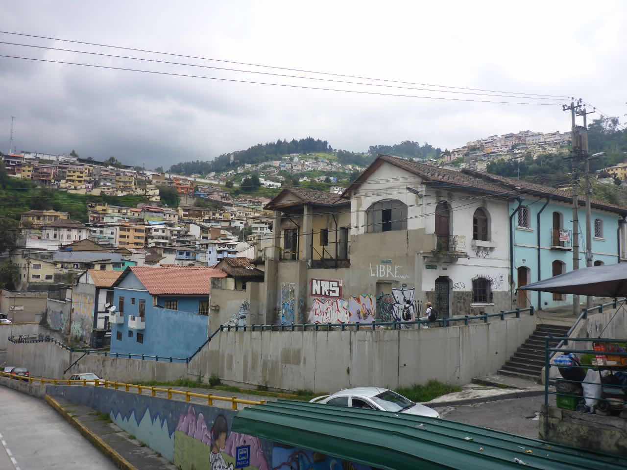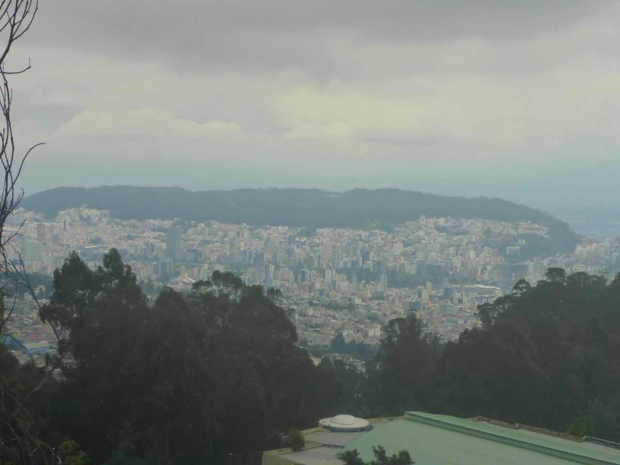 Auf diesem Touren sehe ich natürlich relativ viel von Quito. Es ist eine durchaus moderne Stadt. Der Verkehr ist aber auch wie in einer modernen Stadt. So richtig schön kann ich die Stadt nicht finden, aber ich erkenne schon, dass sie viele Gesichter hat. Quito scheint wirklich sehr groß zu sein. Wir fahren immer höher und immer höher und offensichtlich geht die Strecke über einen Bergrücken, weil manchmal kann ich links unten Quito sehen und manchmal rechts. Ich schätze, dass wir 300 m bis 400 m über der Stadt sind.Aber natürlich sind wir immer noch in der Stadt.