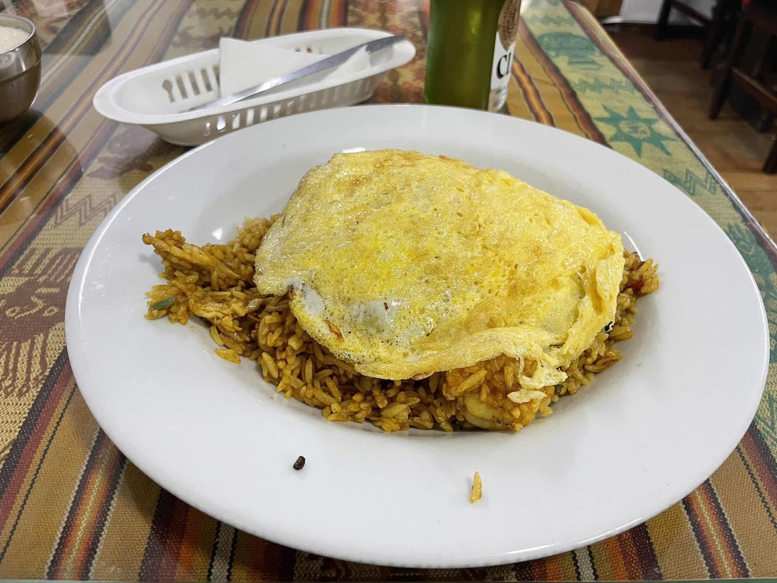 Als sie dann ging, habe ich genauer hingesehen. Und ja, es war ein Drehverschluss, der aussah, wie ein Kronkorken. Cool! Chaulafan ist ein Reisgericht mit Shrimps, Hühnerfleisch und Ei. Sehr lecker!