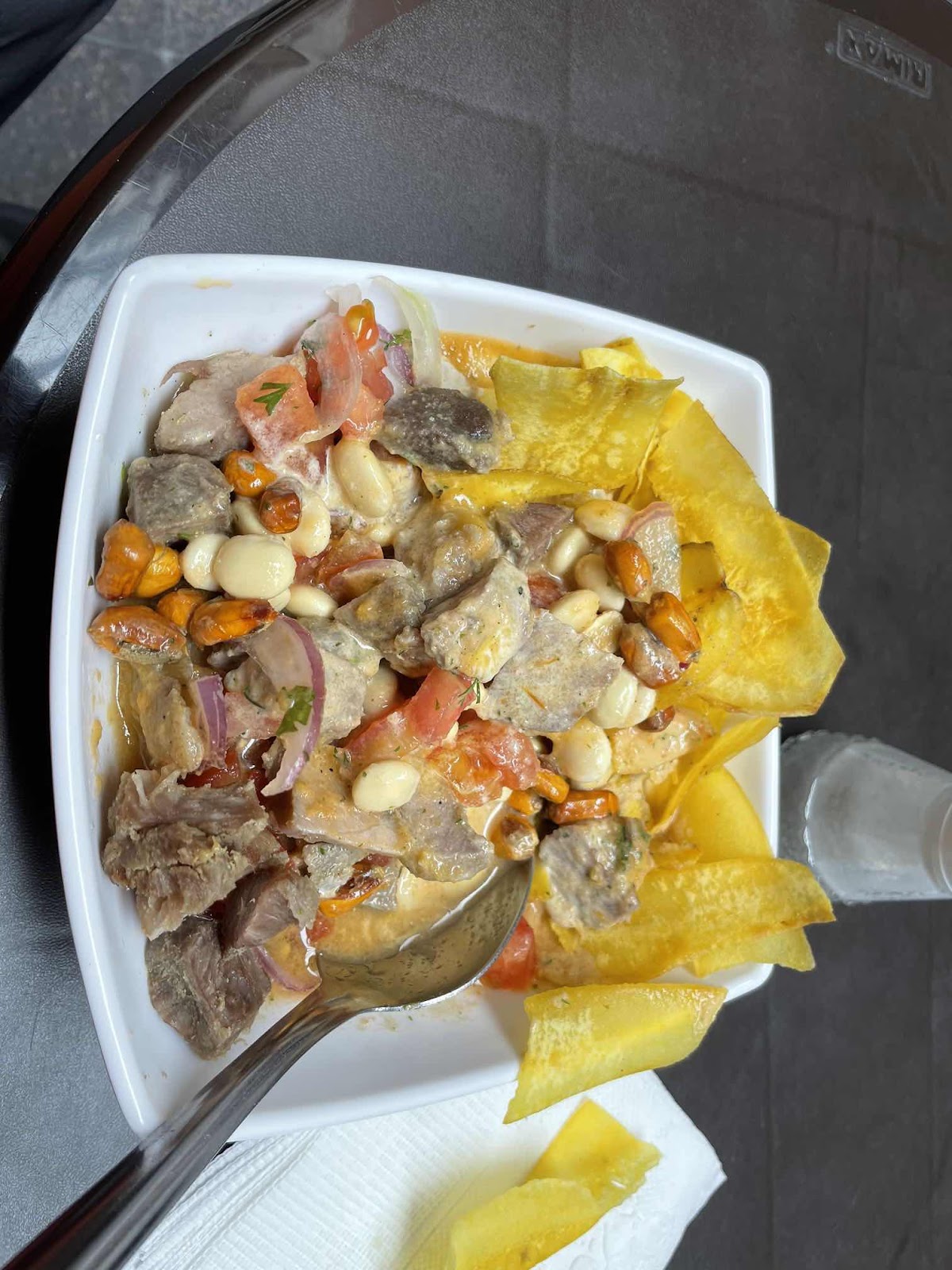 Die Hälfte der Speisekarte bestand aus Ceviche, die hatten hier auch verschiedene Varianten mit Rind und Schweinefleisch auf der Karte. Das war für mich natürlich die Gelegenheit, das einmal ausprobieren. Ich wählte eine Variante mit Schweinefleisch. Die sehr freundliche Kassiererin zeigte mir, wie man sich selbst die entsprechende Sauce zusammen mischen kann. Was soll ich sagen? Es hat super geschmeckt. Ich hing dann gemütlich nach Hause und auf den letzten paar Metern fing es ein wenig an zu regnen. Es scheint hier die Regel zu sein, dass der Regen gerne am Nachmittag kommt. Naja, erst mal Pause machen.