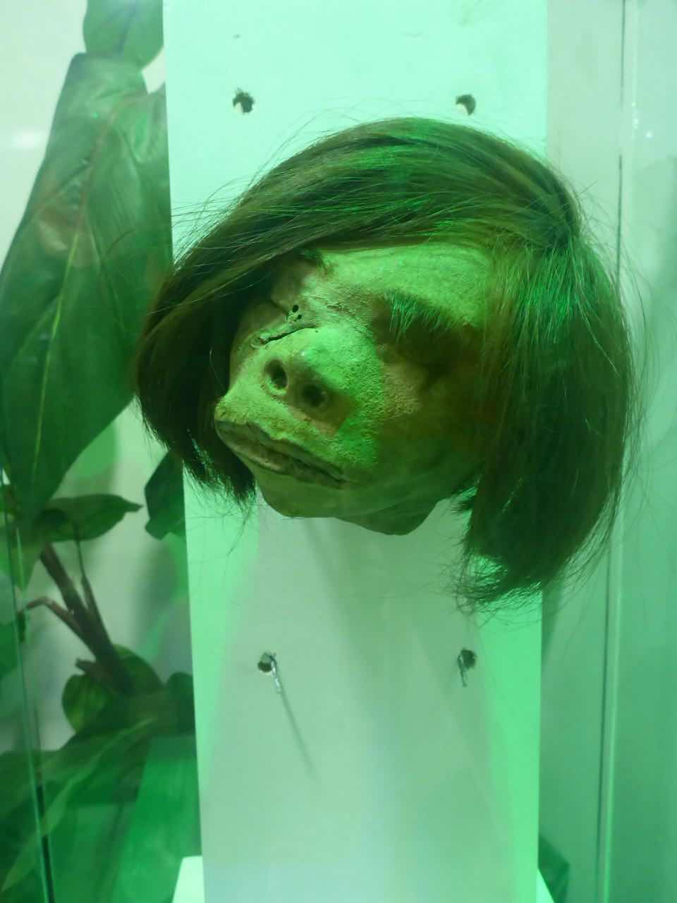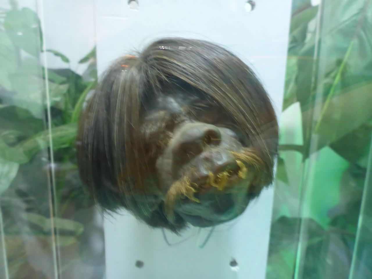 Auch ausgestopfte Tiere aus den Wäldern werden gezeigt und leider Gottes auch Fotos von der Abholzung. In einem anderen Bereich werden auch Schrumpfköpfe gezeigt und eines der Mädchen kommt zu mir und zeigt mir auch genau, welche Schrumpfköpfe echt sind und welche nicht. Es ist erstaunlich, wie klein die Köpfe sind. Die einzelnen Völker, die im Amazonas leben, sind nicht groß. Manche bestehen aus 800 Menschen, manche aus 2000 andere nur aus 200. Die Bezeichnung Völker ist erst später gewählt worden und bezeichnet eigentlich nur Menschen in einem gemeinsamen Sprachraum.