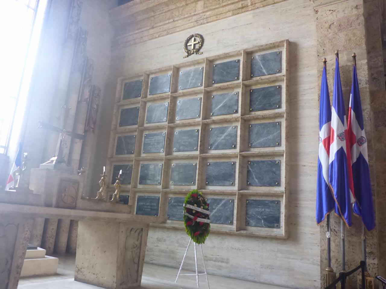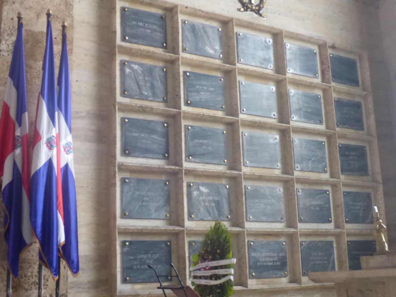 Am Ende der Halle ist dann so etwas wie ein Altar, und auf der rechten Seite sind die Präsidenten, auf der linken Seite sind die Generäle verewigt oder begraben. Davor, genau unter dem Kronleuchter, ist eine ewige Flamme.