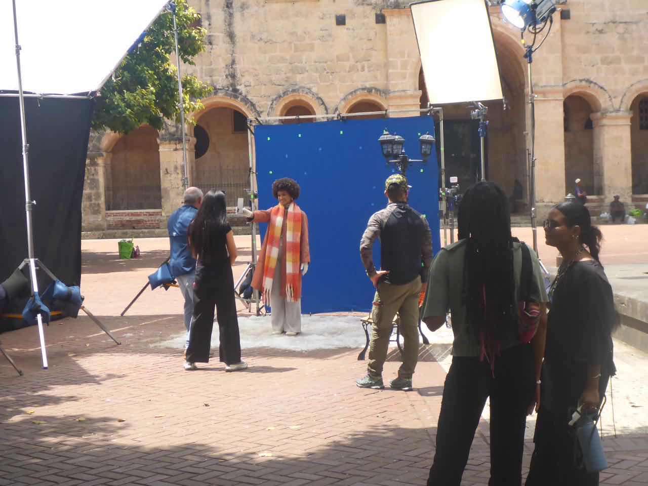 Vor der Kathedrale, an der Kolumbusstatue, fanden gerade Filmaufnahmen statt. Es waren auch überall Schilder. Da war der typische Regisseur, der immer seine Anweisungen gerufen hat und offensichtlich schlecht gelaunt war, und eine sehr hübsche Schauspielerin, die dabei gefilmt wurde, wie sie ging. Das ganze fand auf einem Laufband statt, was natürlich die Filmaufnahmen etwas erleichtert. Sie trug eine relativ warme Jacke, und nach dem Dreh setzt sie sich auf einen Stuhl, und eine andere Frau fächelte ihr frische Luft zu. Sowas möchte ich auch mal haben.
