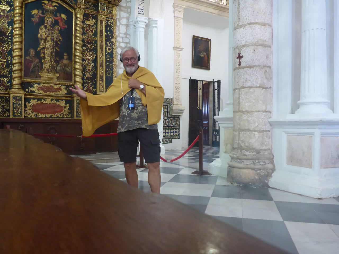Draußen ist es auch um diese Uhrzeit schon sehr warm, deshalb war ich froh, in die Kühle der Kathedrale eintauchen zu können. Leider Gottes (nomen est omen) sind hier Besucher mit Tanktops nicht zugelassen und so erhalte ich eine wärmende Decke, die ich über meine nackten Schultern legen muss.